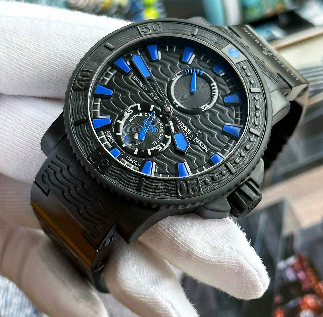Топовый Макси Марин в 45 кузове, в самом красивом исполнении- синем цвете. Только часы, отличное состояние, вставки и застежка керамика, каучук на руку 21+. Модель, которую, уже в бутикаx увы не найти, да и живых на вторичке все меньше и меньше. Выпущены серией в 999 экз. Прекрасная возможность пополнить сет часами, которых с каждым днём все меньше в продаже на рынке, а их цена уверенно растёт. Обслужены.