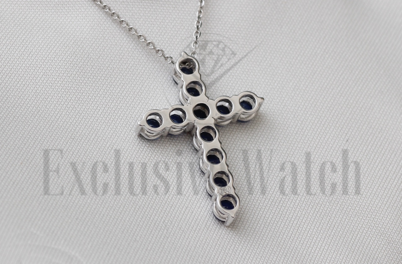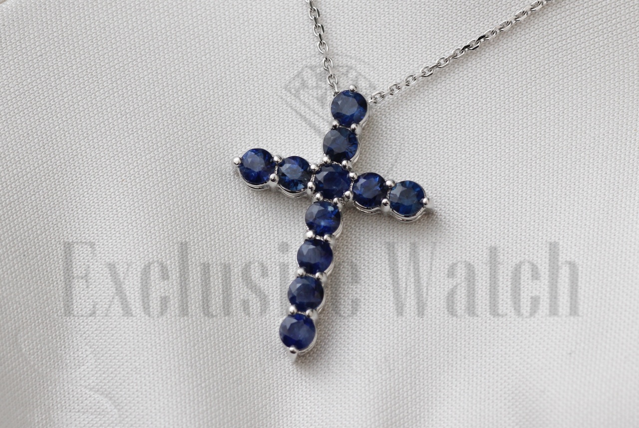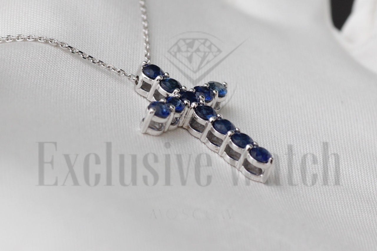 САПФИРОВЫЙ КРЕСТИК В БЕЛОМ ЗОЛОТЕ 750 ПР ПРИРОДНЫЙ САПФИРЫ (МГУ) Расчетная масса: 1,76 карат