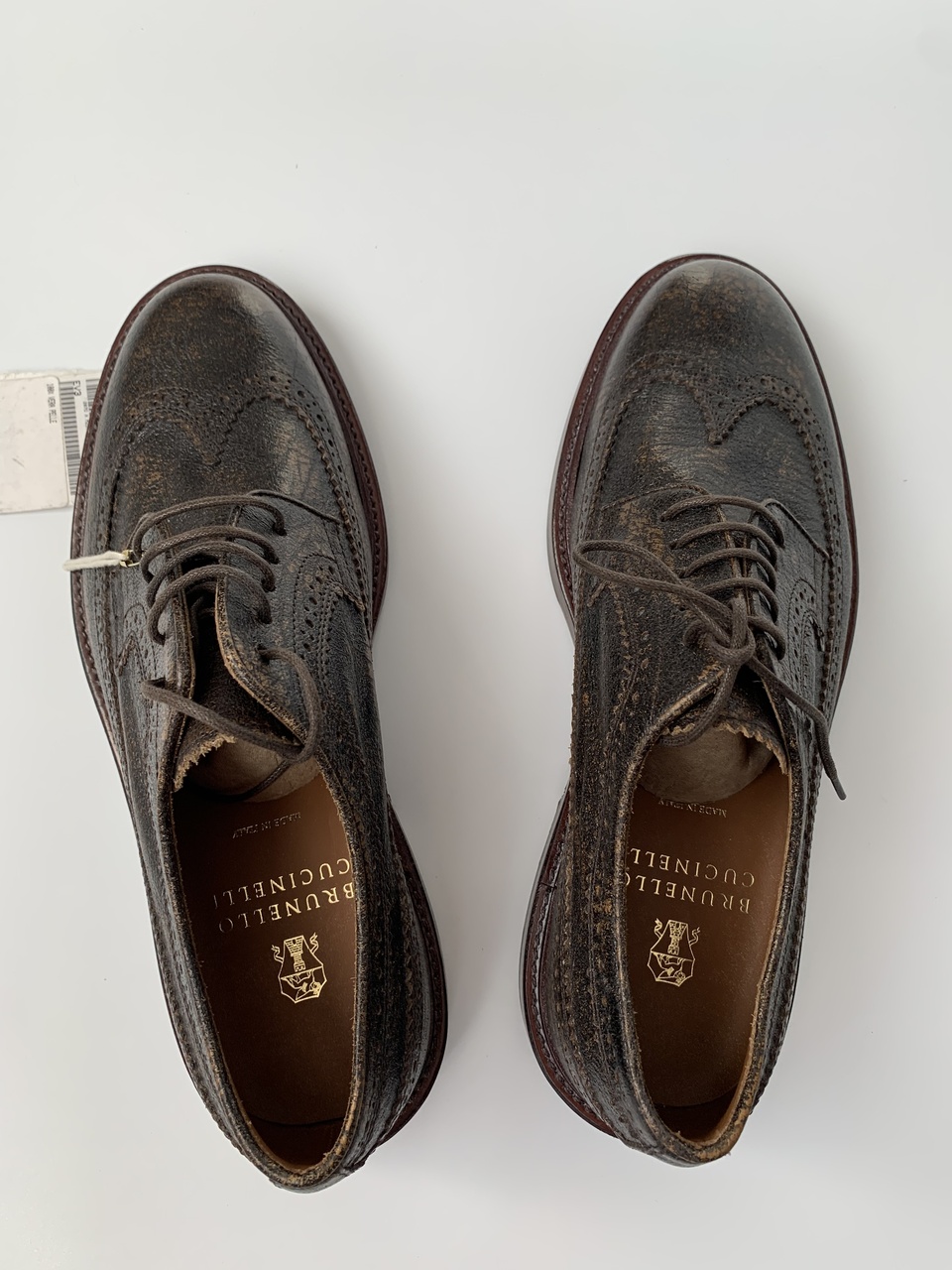 BRUNELLO CUCINELLI новые мужские кожаные броги тёмно-коричневого цвета Vintage Leather (42 EU size)
