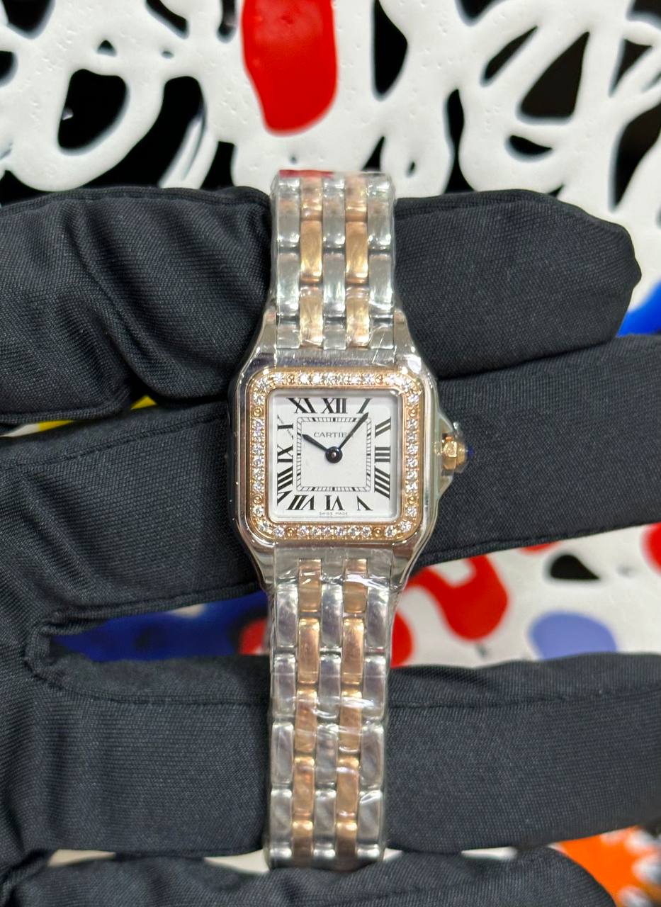 CARTIER PANTHERE DE CARTIER SMALL MODEL, PINK GOLD AND STEEL, DIAMONDS W3PN0006.