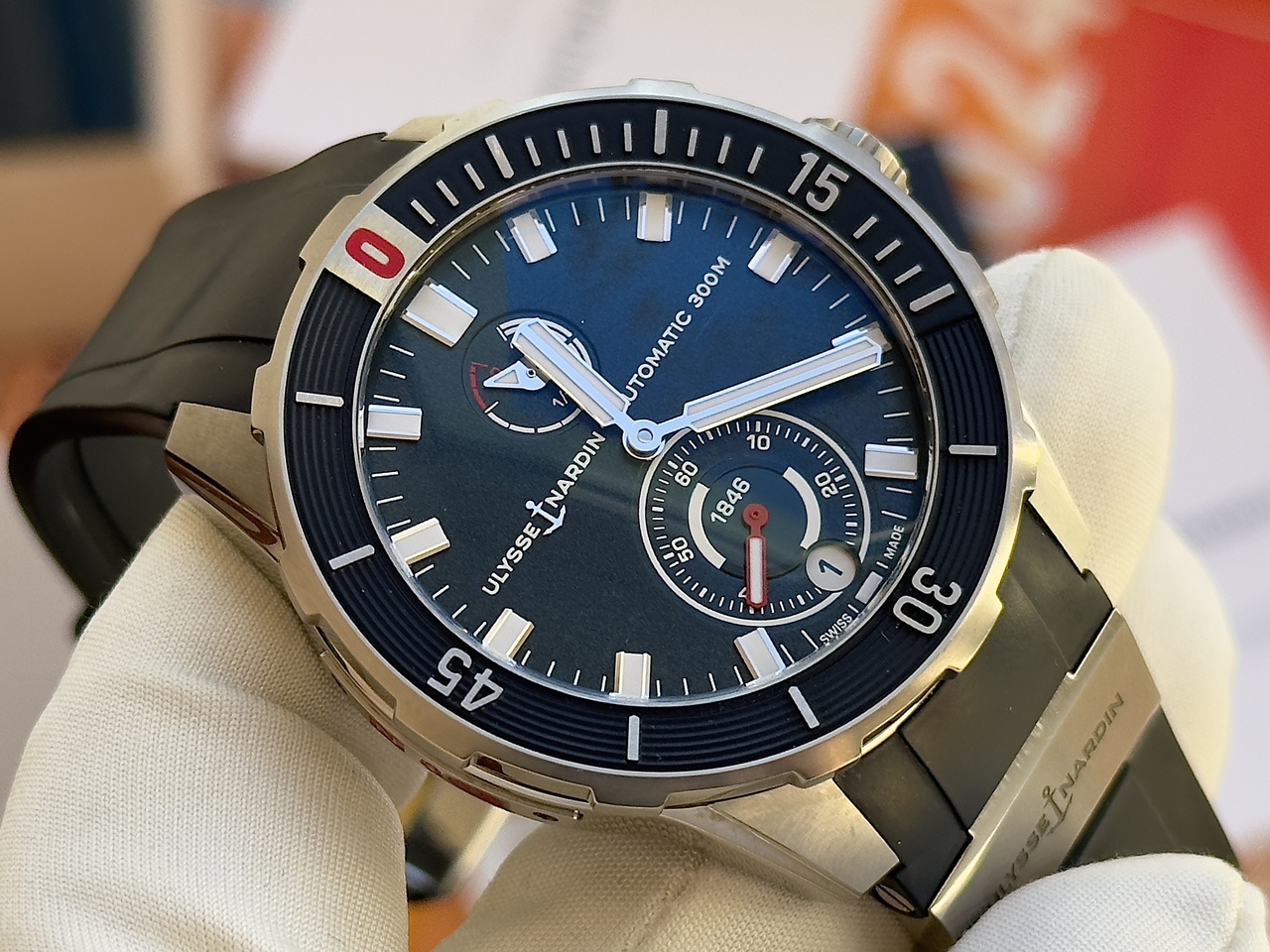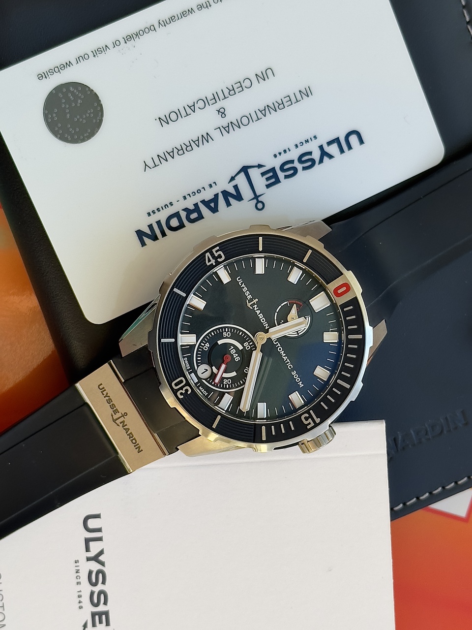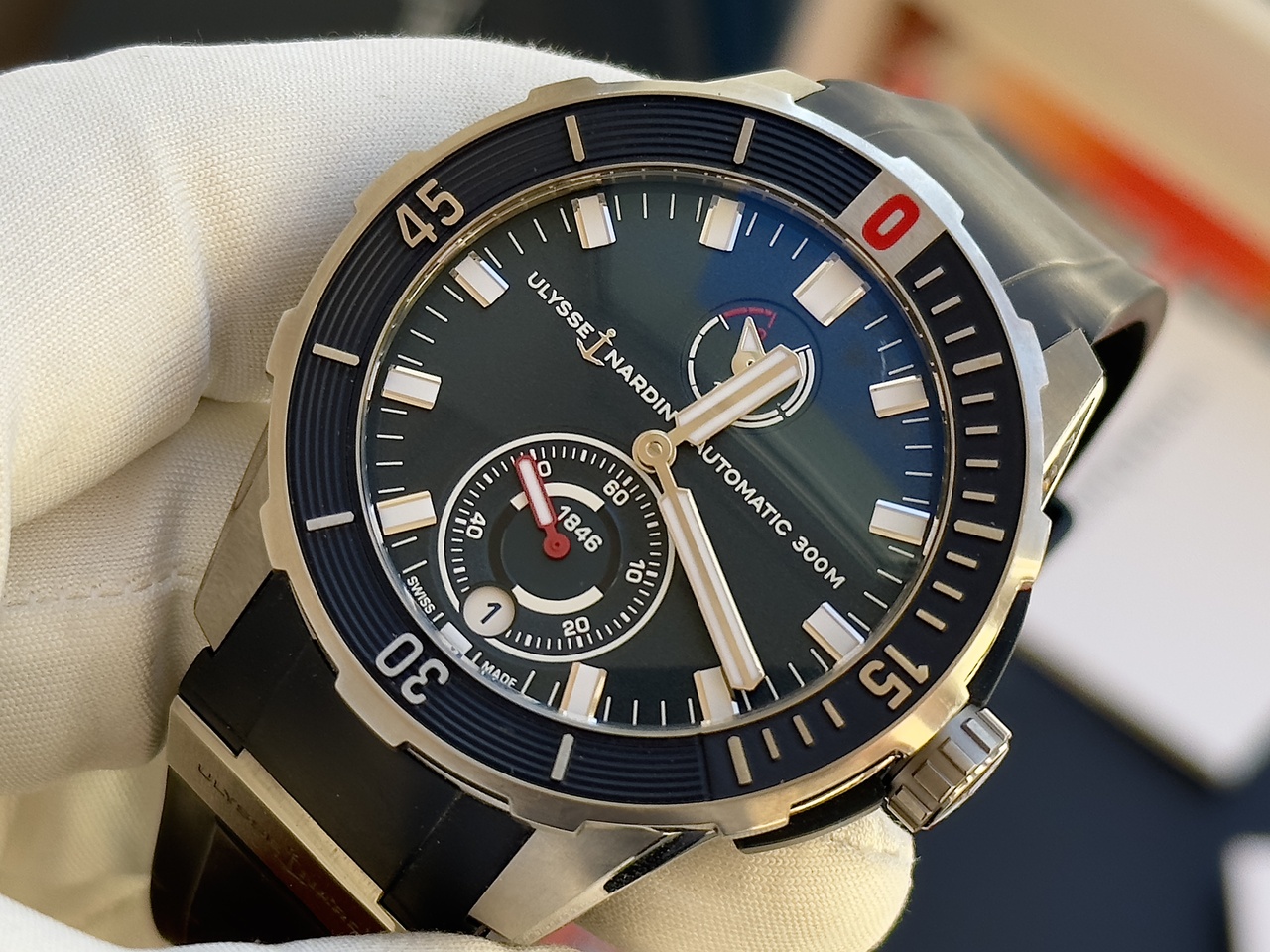 Красивый крупный титановый дайвер на мануфактурном калибре от Улисс Нардан. Модель из актуальной линейки.