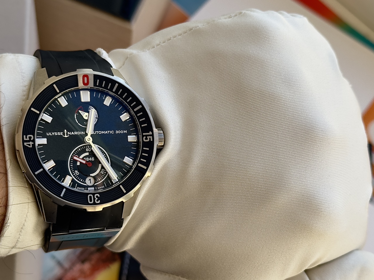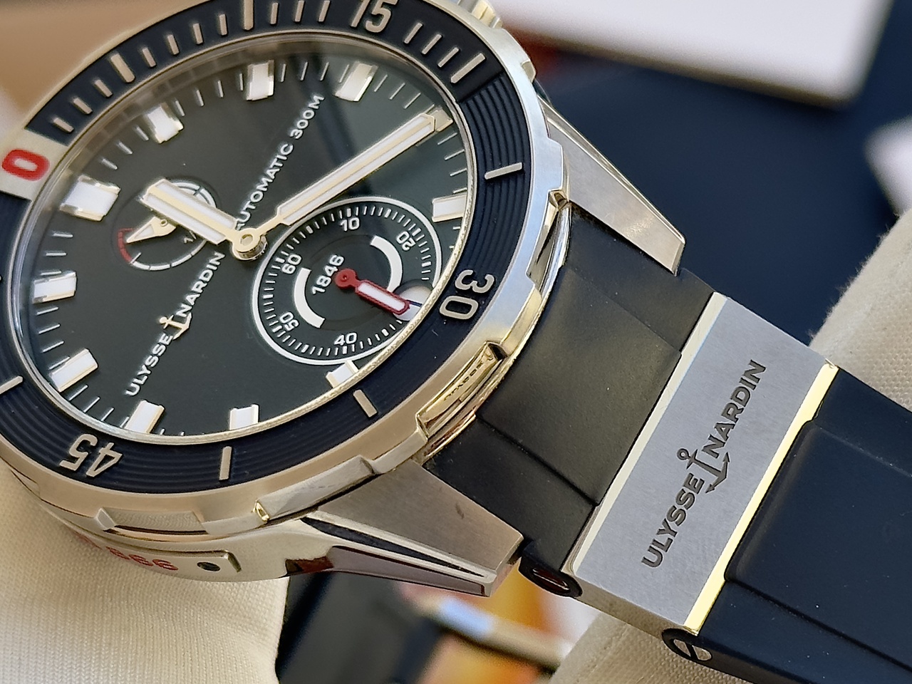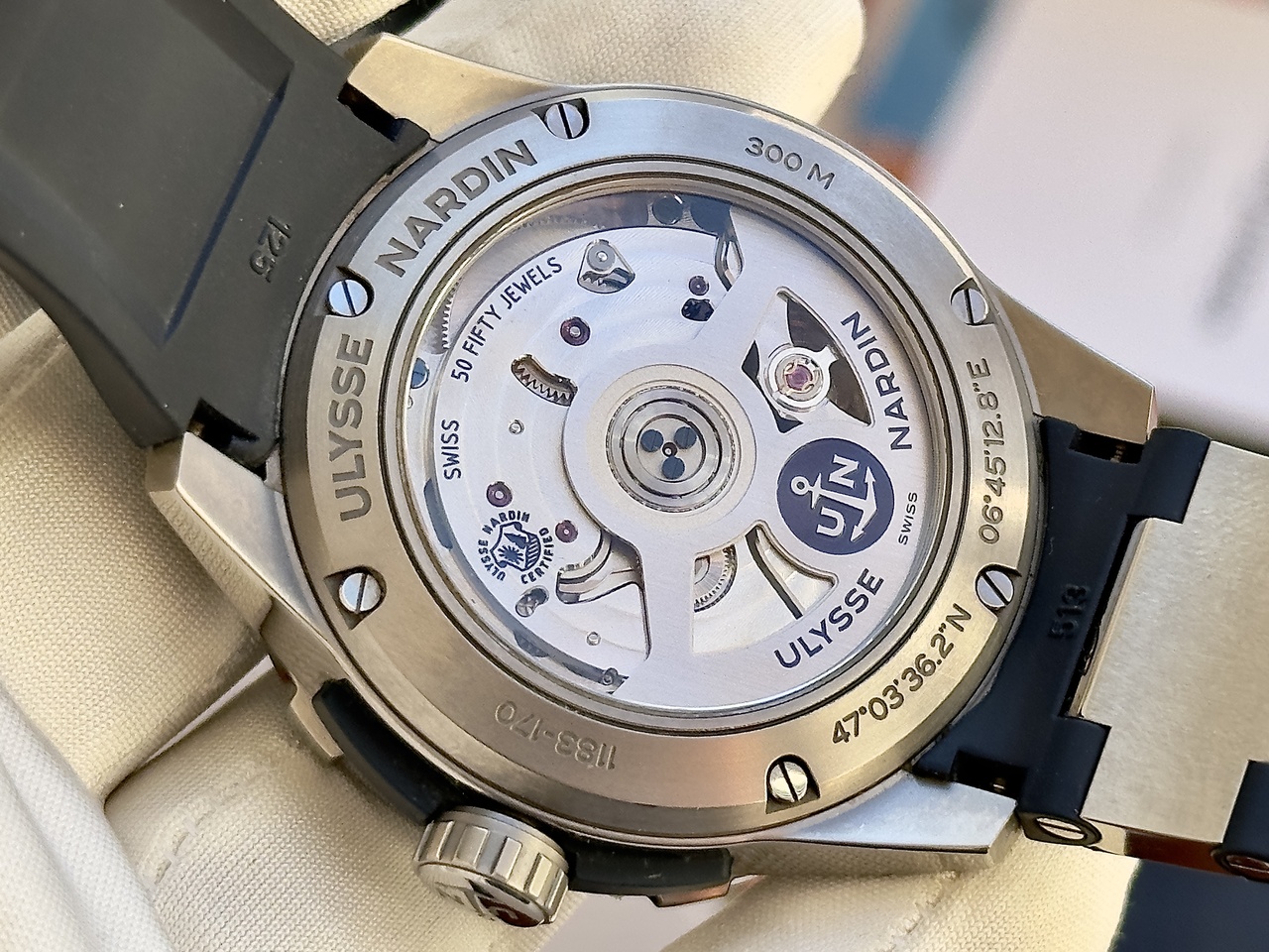 Красивый крупный титановый дайвер на мануфактурном калибре от Улисс Нардан. Модель из актуальной линейки.