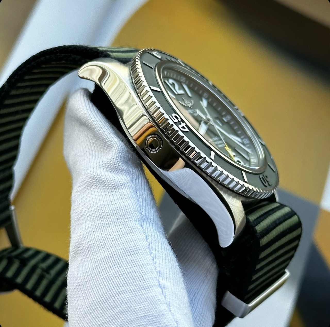 Безумно красивый зеленый супероушен. полный комплект, куплены у дилера в России в 2022г. Отличное состояние, 44мм. Натовский ремень. Красивый темно-зеленый циферблат, накладные метки.