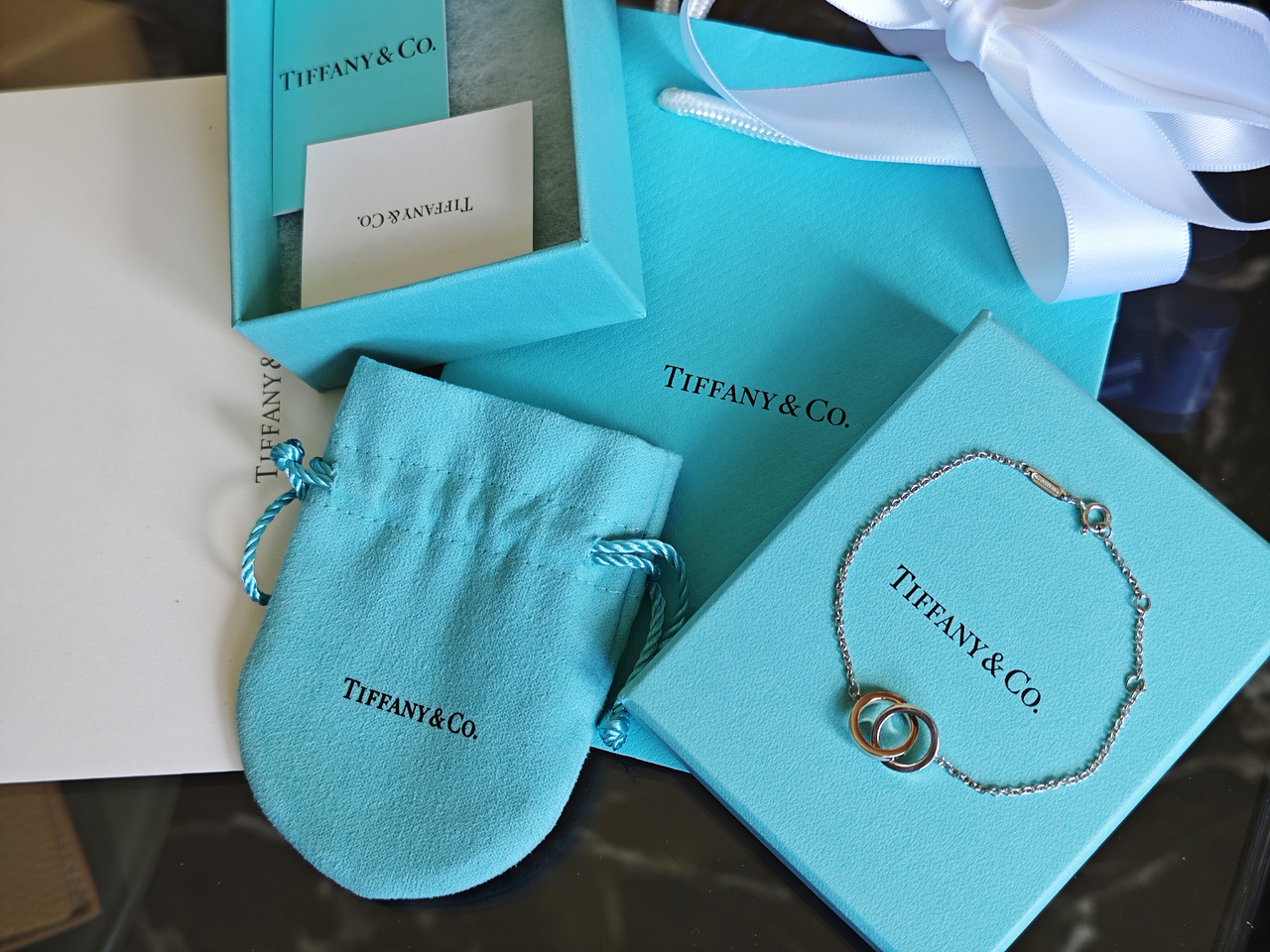 В продаже оригинальный новый браслет-цепочка в виде 2х переплетающихся колец Tiffany & Co 1837