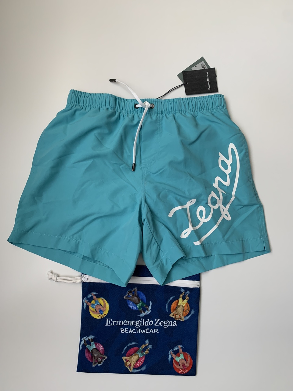 Ermenegildo Zegna новые мужские шорты-плавки бирюзового цвета с логотипом бренда (S/46 IT size)