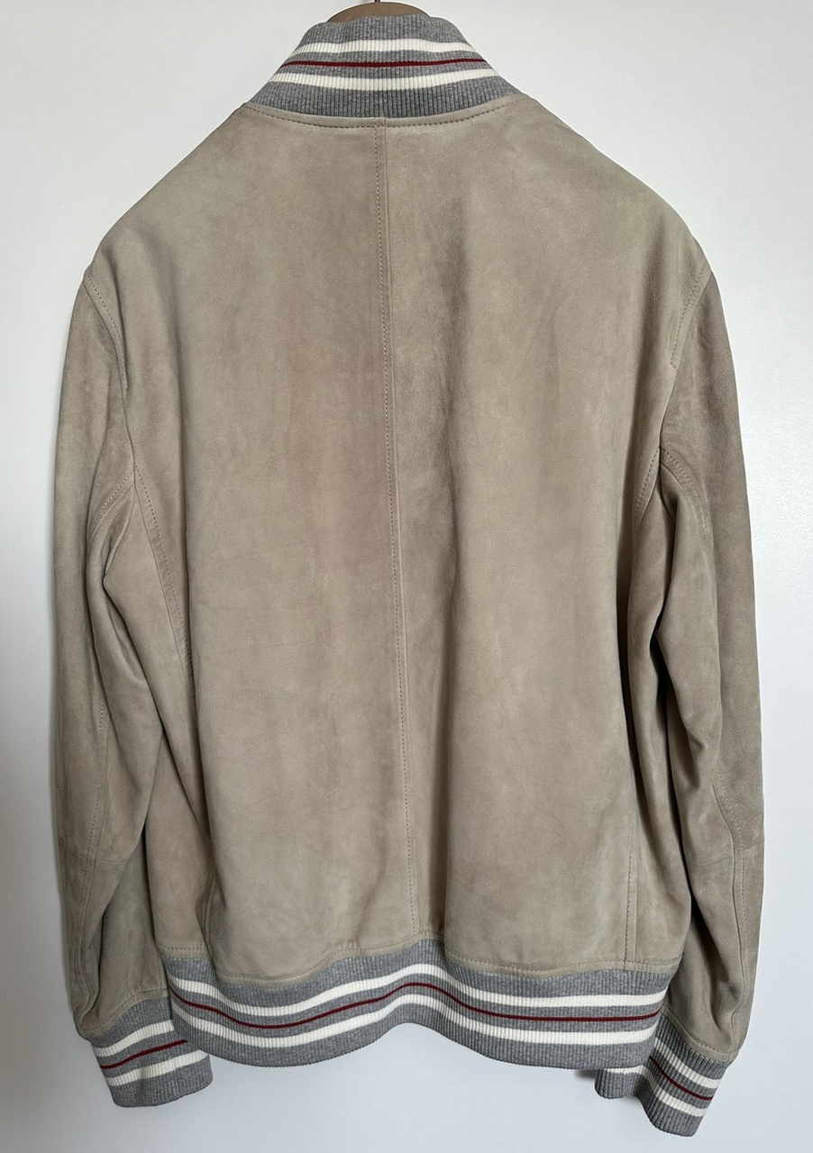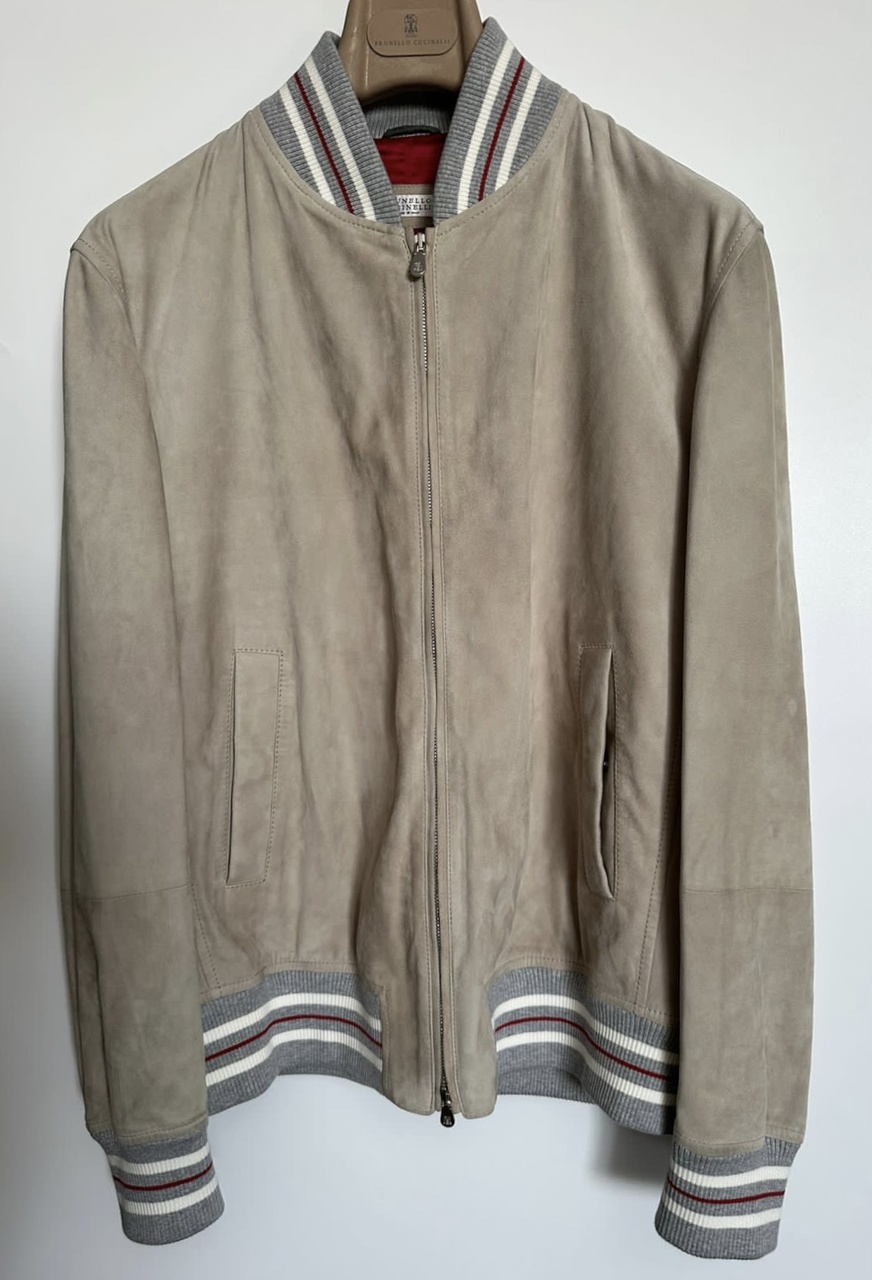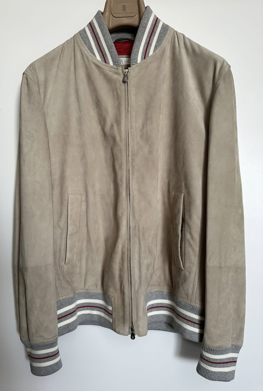 BRUNELLO CUCINELLI новая мужская куртка-бомбер из замши /светло-серого цвета/ (S/48 IT size)