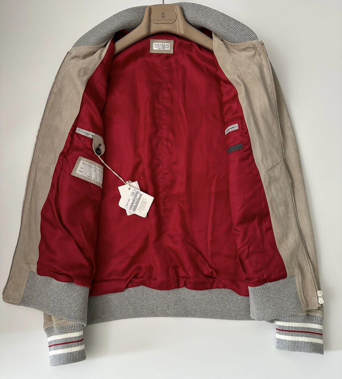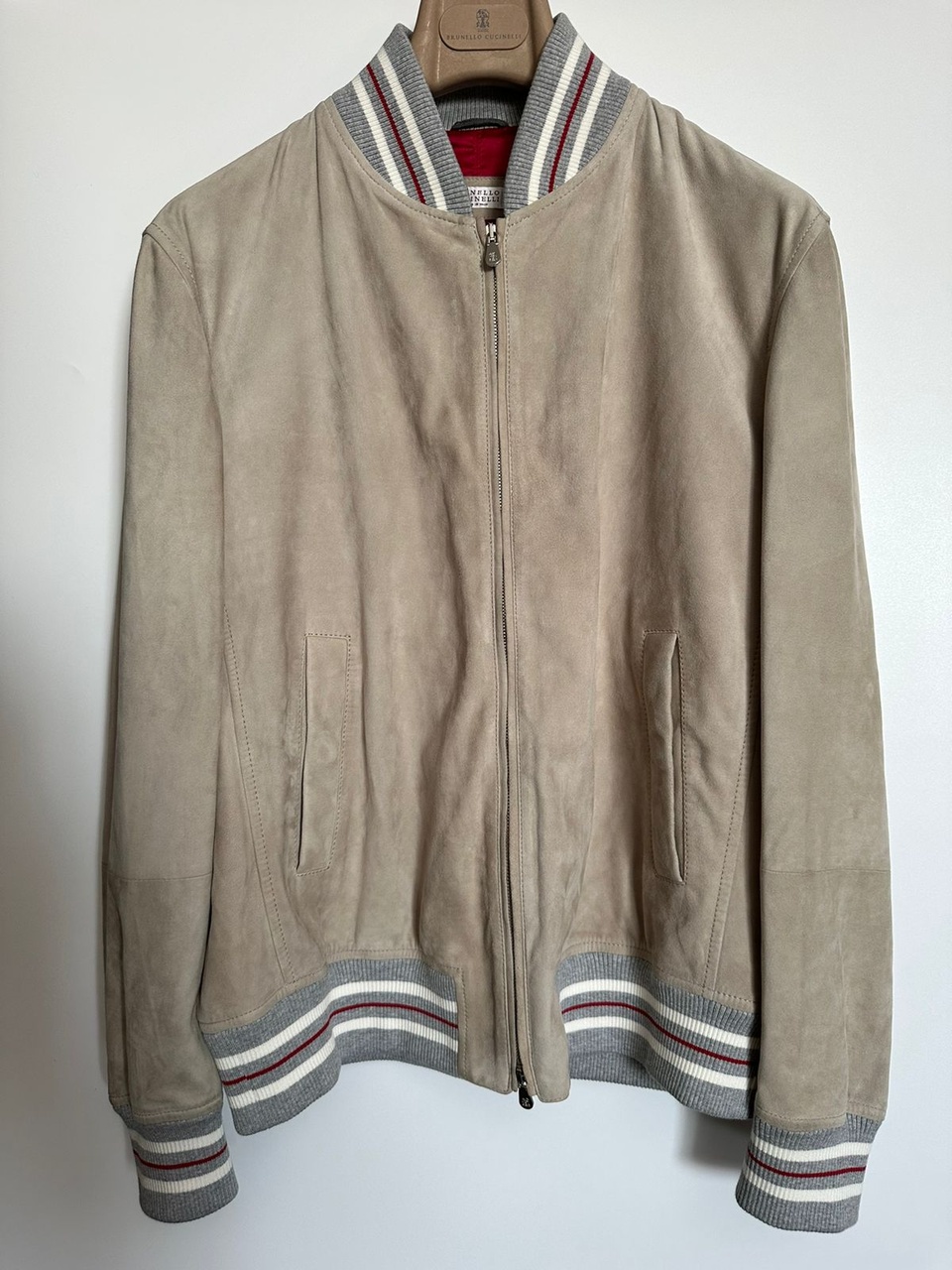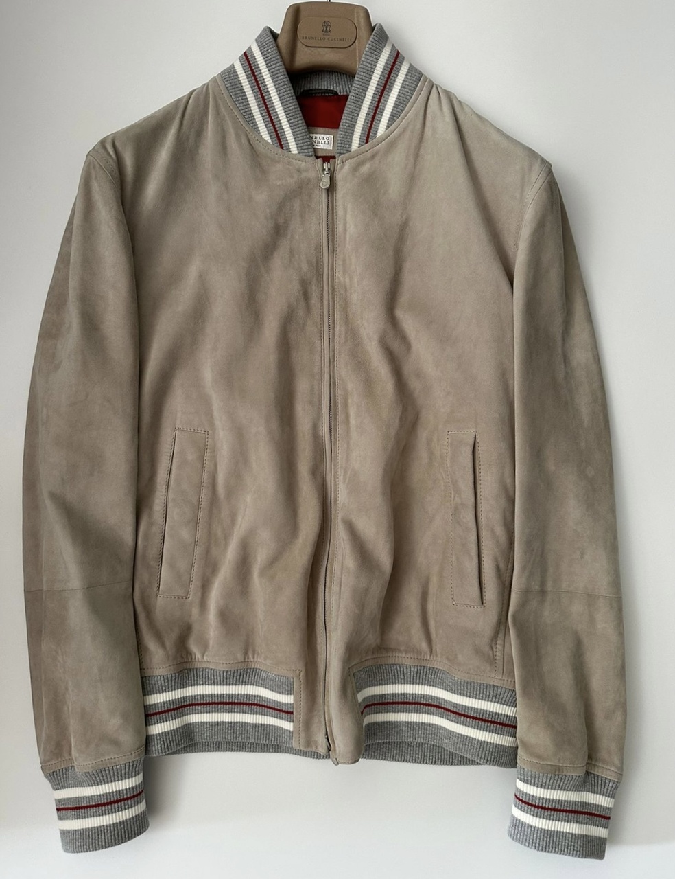 BRUNELLO CUCINELLI новая мужская куртка-бомбер из замши /светло-серого цвета/ (S/48 IT size)