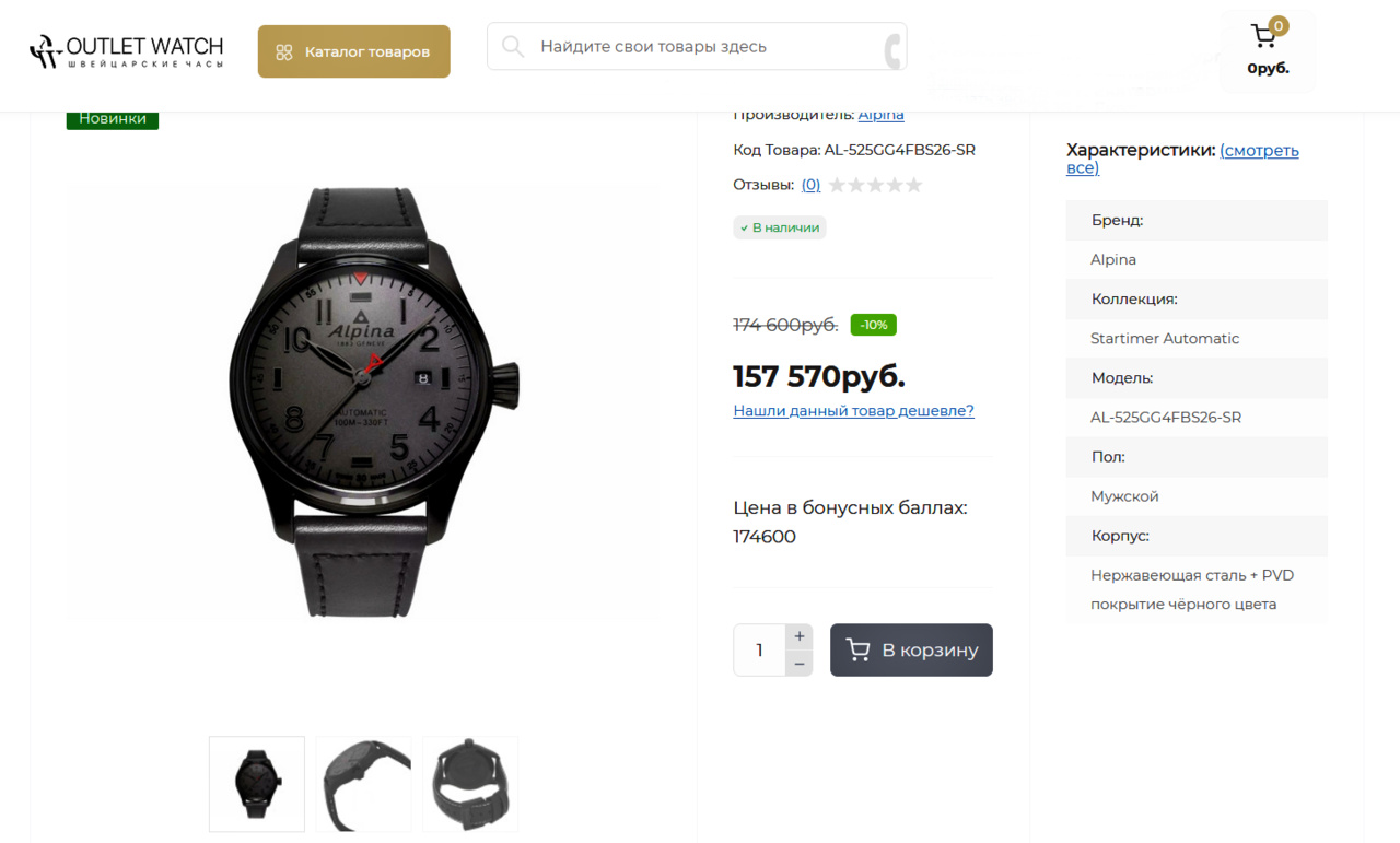 Материал корпуса: Нержавеющая сталь с износостойким покрытием PVD чёрного цвета
