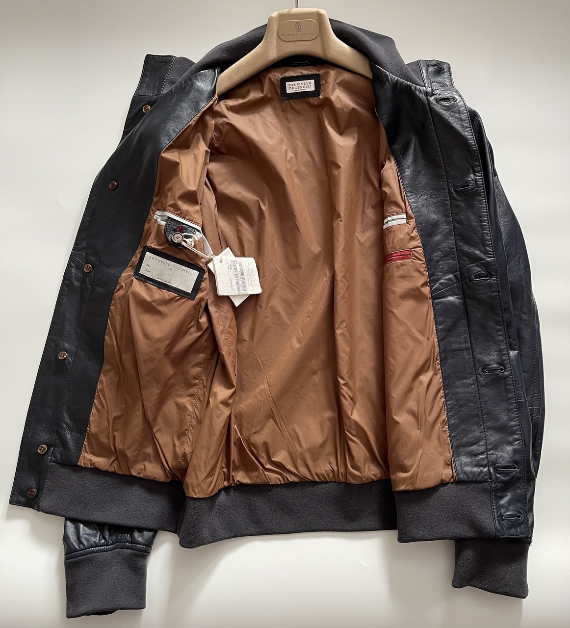 BRUNELLO CUCINELLI новая мужская кожаная куртка /цвет синий/ (S/48 size)