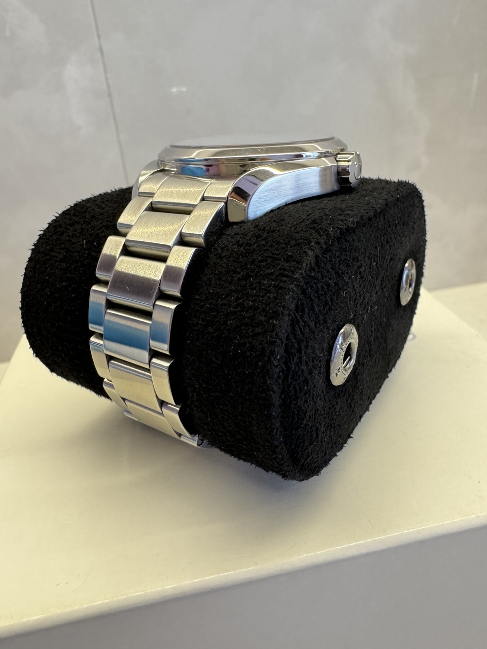 Циферблат эффектный в самом лучшем цвете для данной модели, метки и стрелки под воздействием света играют как бриллианты. Браслет очень удобный, часы сидят так, как будто их нет, чувствуется только небольшая приятная тяжесть. Стекло сапфировое с антибликом. Красивый бирюзовый люм, который долго светит. Часы в отличном состоянии, обслужены, идеально подойдут на каждый день, люксовые и заметные. В комплекте коробка и часы.