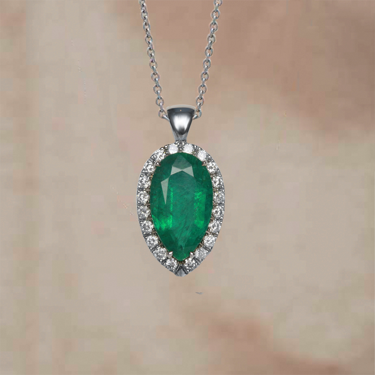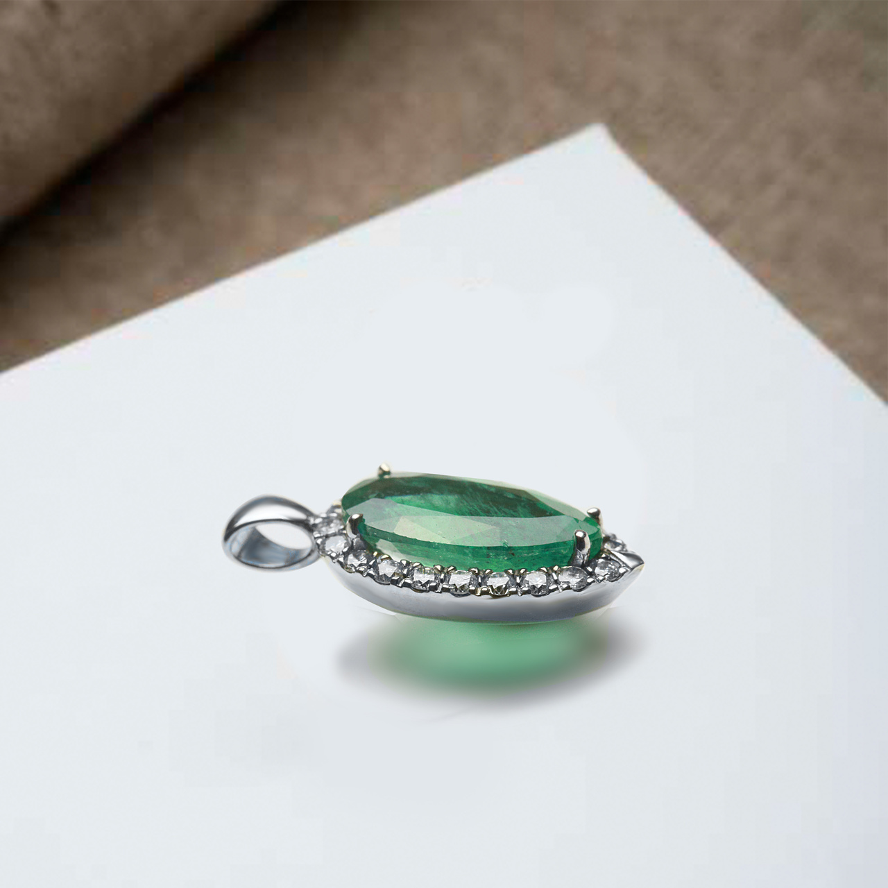 Подвеска из белого золота с изумрудом 2,65 карат и бриллиантами 0,3 карат (сертификат МГЦ)