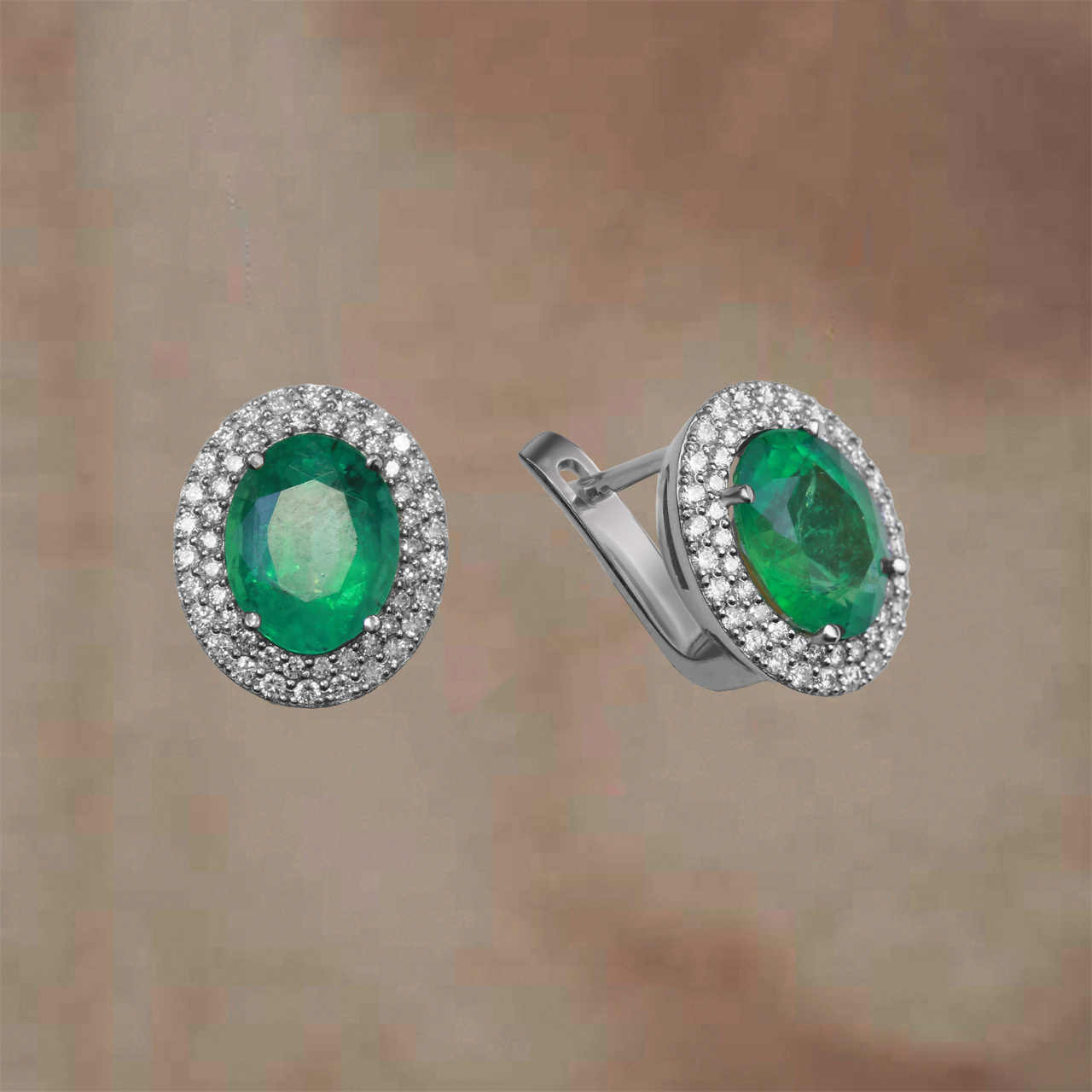 Серьги из белого золота с изумрудами 2,54 карат и бриллиантами 0,53 карат (сертификат МГУ)