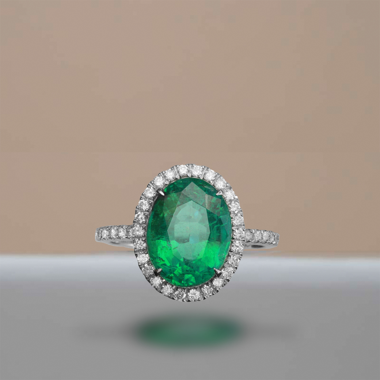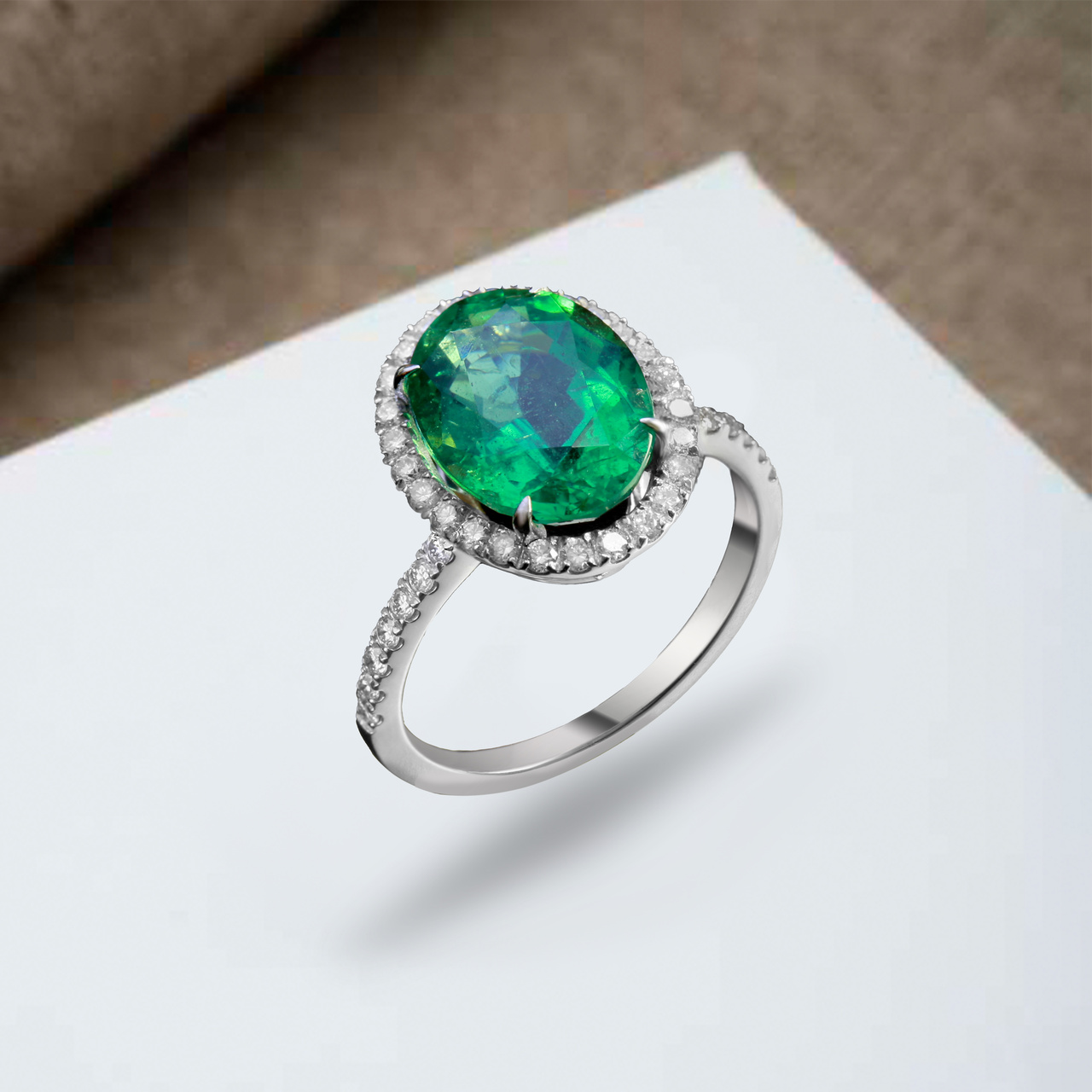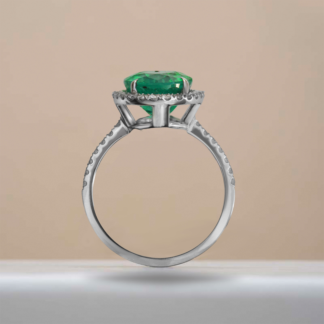 Кольцо из белого золота с изумрудом 3,6 карат и бриллиантами 0,36 карат (сертификат МГУ)