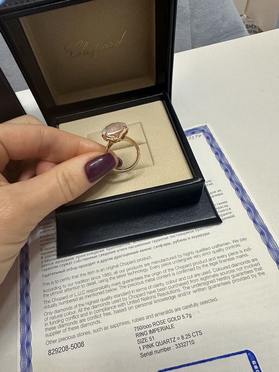 КОЛЬЦО CHOPARD IMPERIAL С РОЗОВЫМ КВАРЦЕМ, комплект , торг/отправка