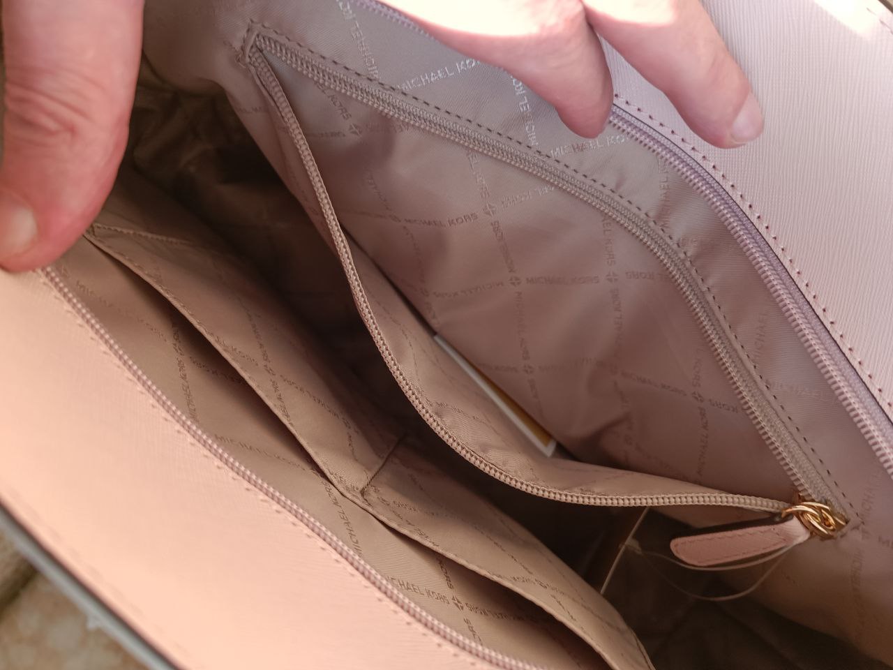 Внутри три кармана. Один большой на замочке. и два маленьких.
