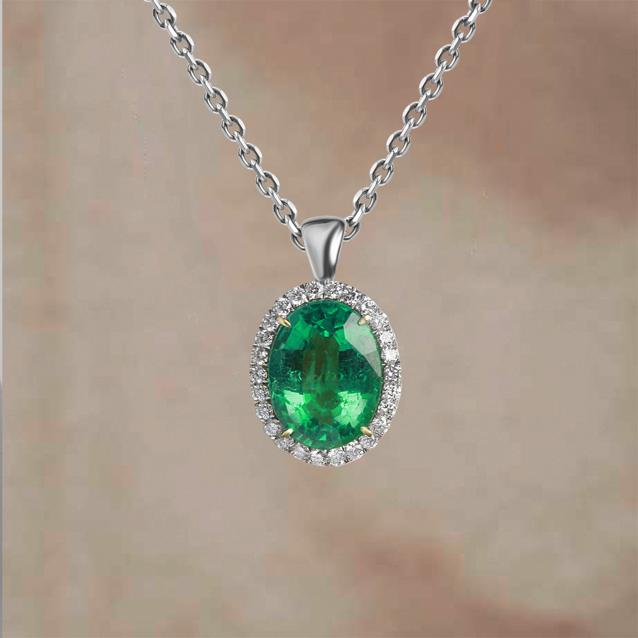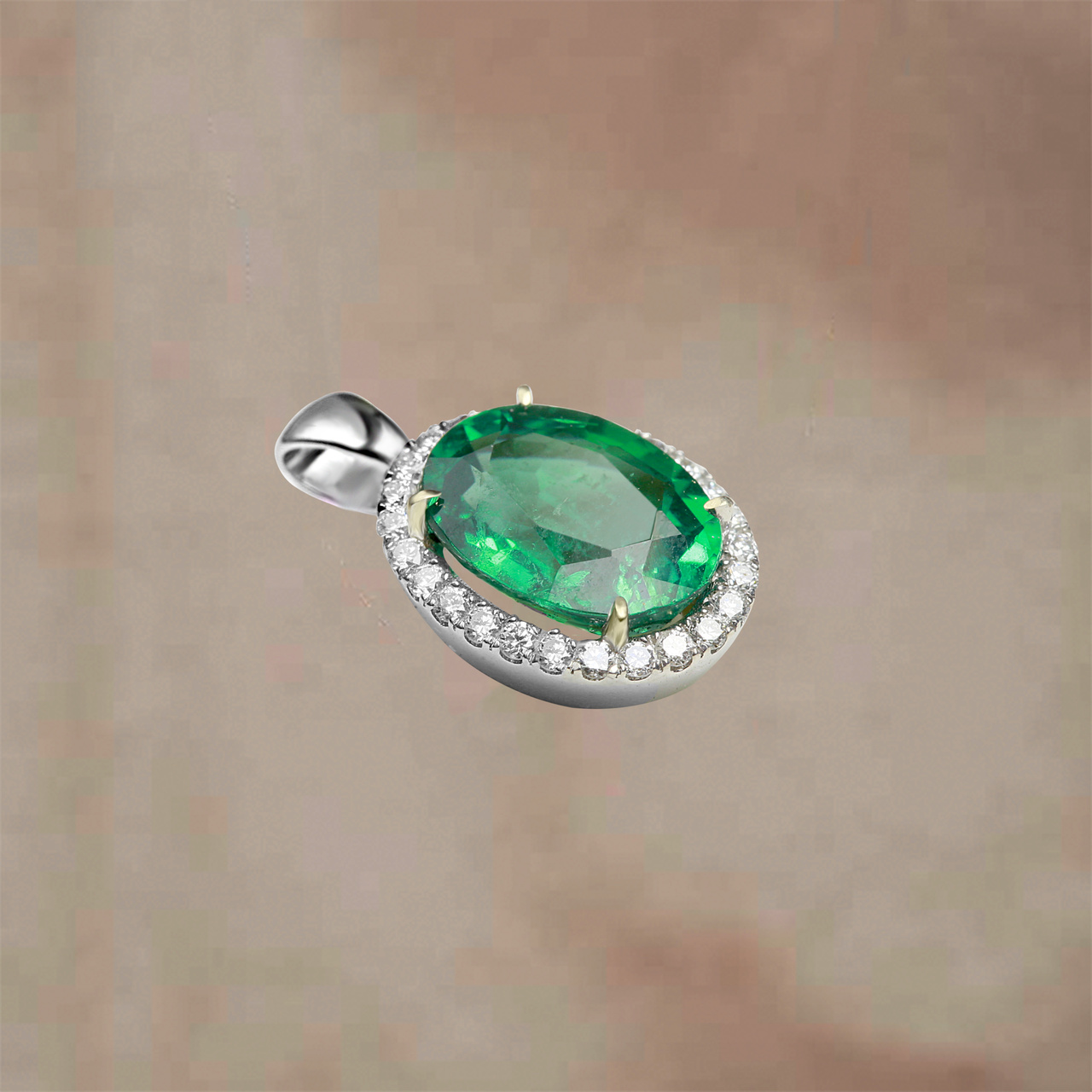 Подвеска из белого золота с изумрудом 2,2 карат и бриллиантами 0,2 карат (сертификат МГУ)