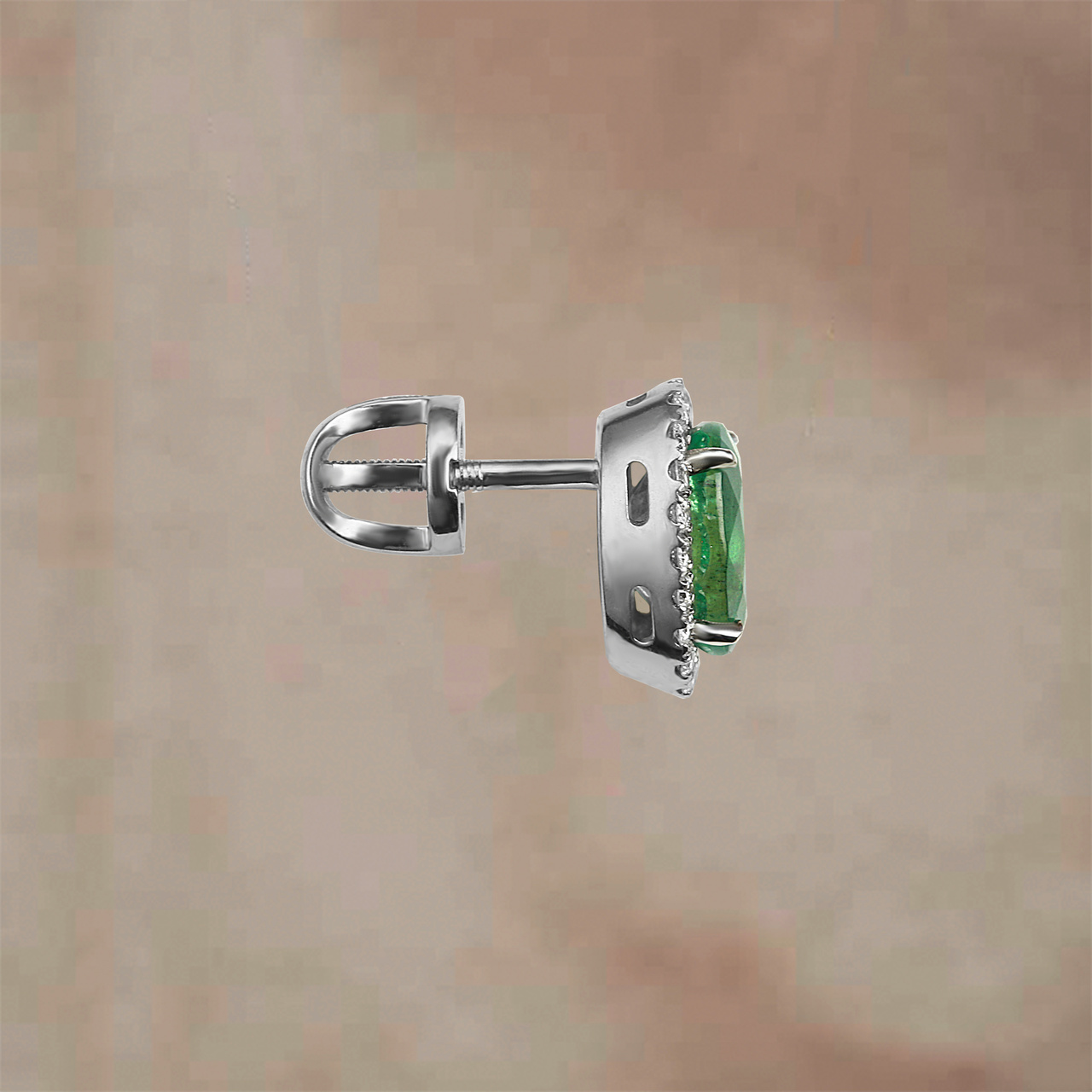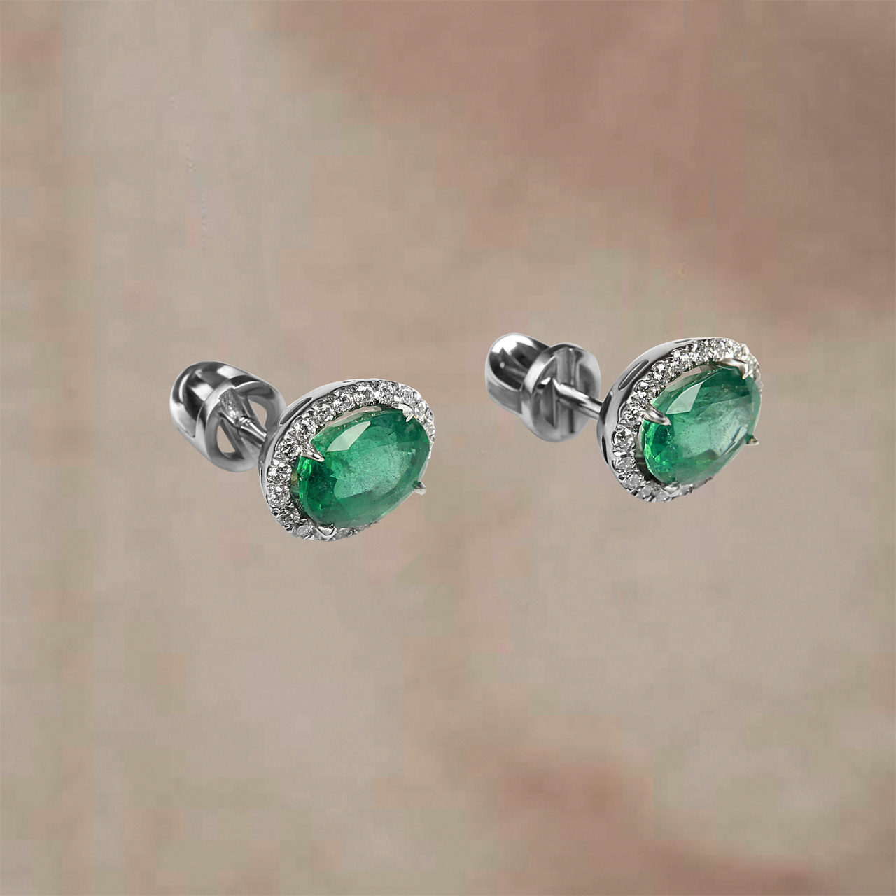 Серьги-пуссеты из белого золота с изумрудами 2,95 карат и бриллиантами 0,31 карат (сертификат МГУ)