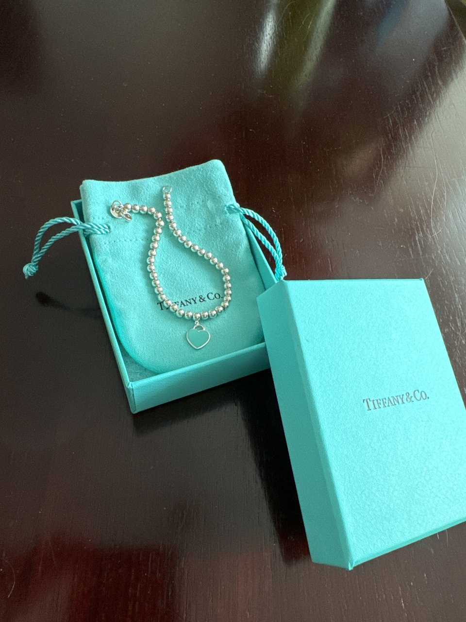 [ЖЕНСКИЙ БРАСЛЕТ] TIFFANY & CO Heart Tag с бирюзовой эмалью, всего за 42000руб. Новый.