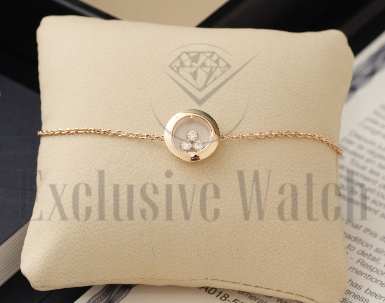 БРАСЛЕТ * CHOPARD * HAPPY DIAMONDS ICONS ROUND 85А018-5001 / РОЗОВОЕ ЗОЛОТО 18 К / 3 ПЛАВАЮЩИХ БРИЛЛИАНТА