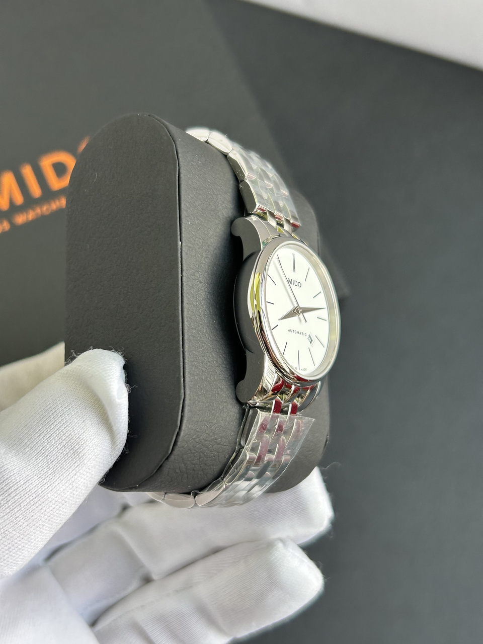 Циферблат: белый циферблат с серебристыми стрелками и часовыми метками