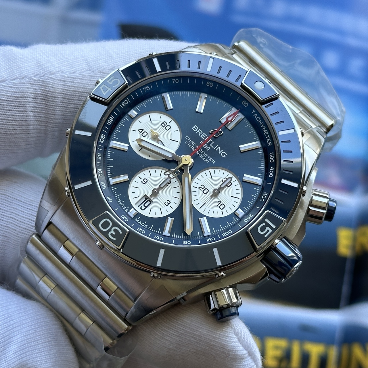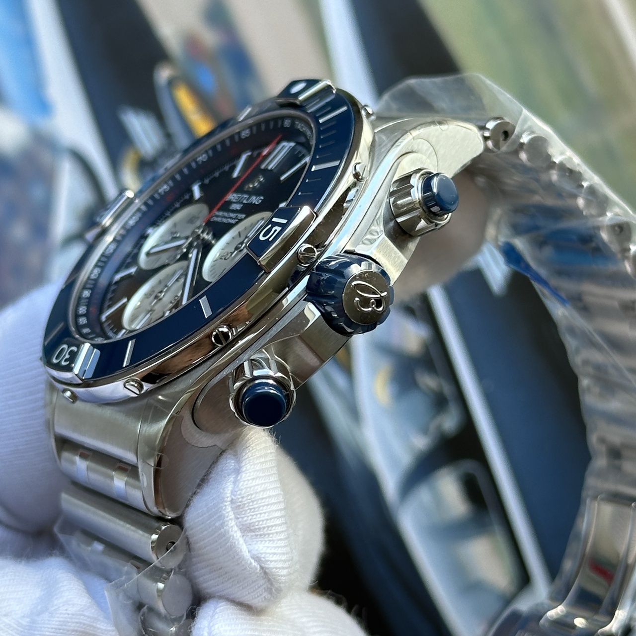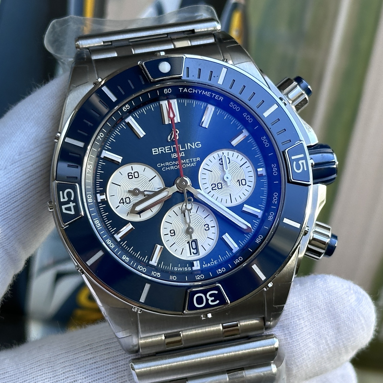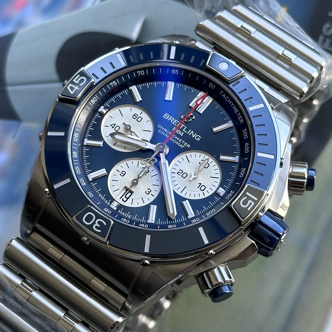 Абсолютно новый флагман от Брайтлинг, в своей последней реинкарнации - в топовом исполнении в стали - браслет, синий фейс, керамика. Не путайте с мелкими моделями, или часами со стальным безелем. Покупка- сентябрь 2024г. Прайс в Mercury: 1 248 000₽, и когда их берешь в руки понятно за что)))