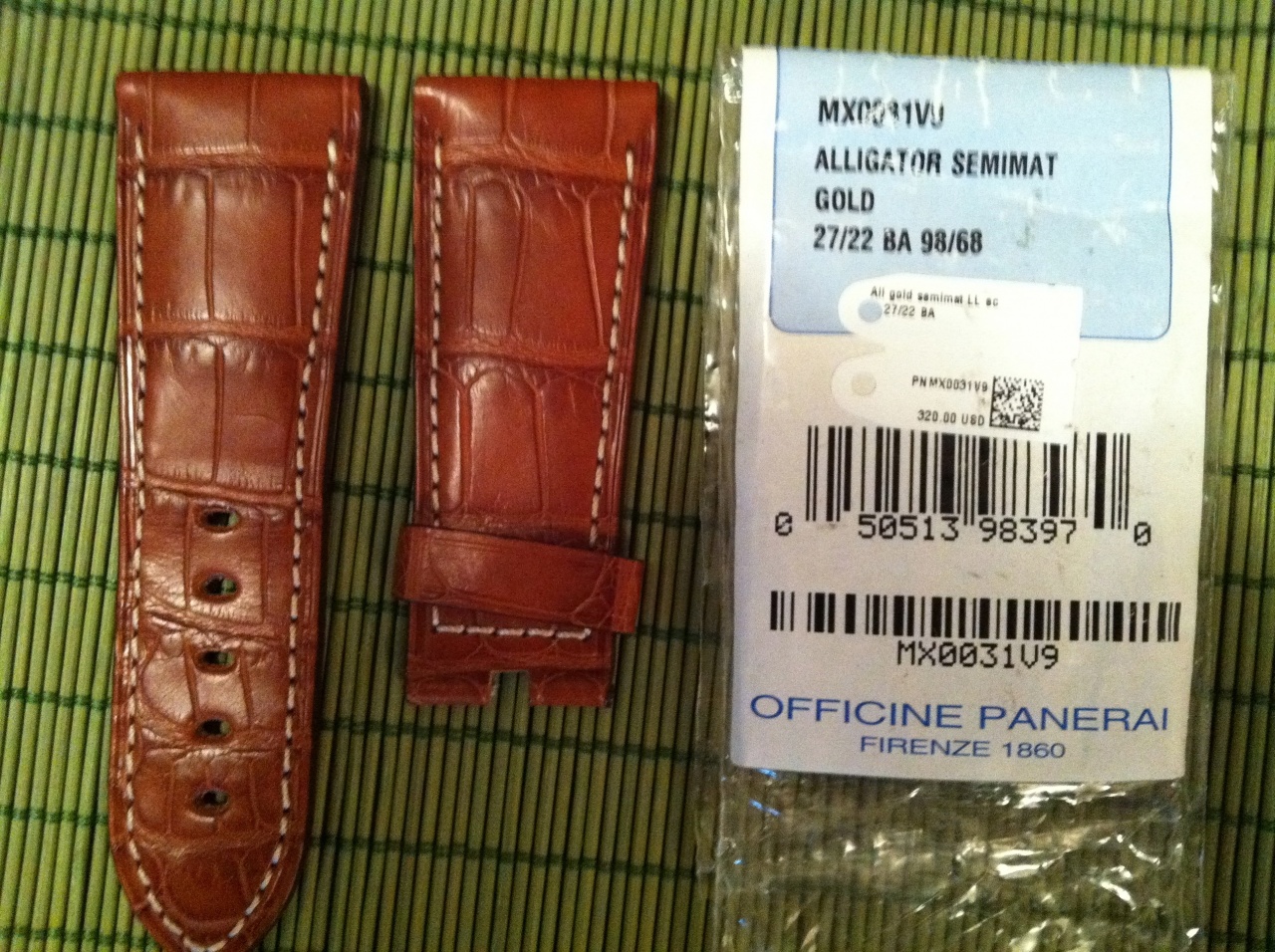 Продаю оригинальный ремень на Panerai Radiomir 27/22 Alligator Semimat Gold, длина 98/68. Ремень куплен в бутике PAM в Нью-Йорке. К сожалению, не подошел размер