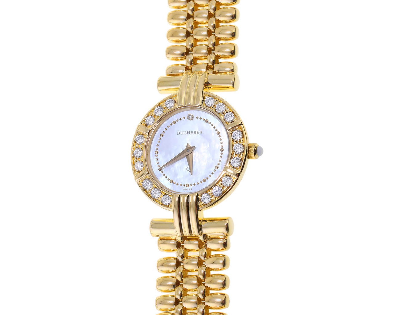 Оригинальные золотые часы с бриллиантами 0.55ct и халцедоном 0.03ct от всемирно известного бренда Carl F. Bucherer.