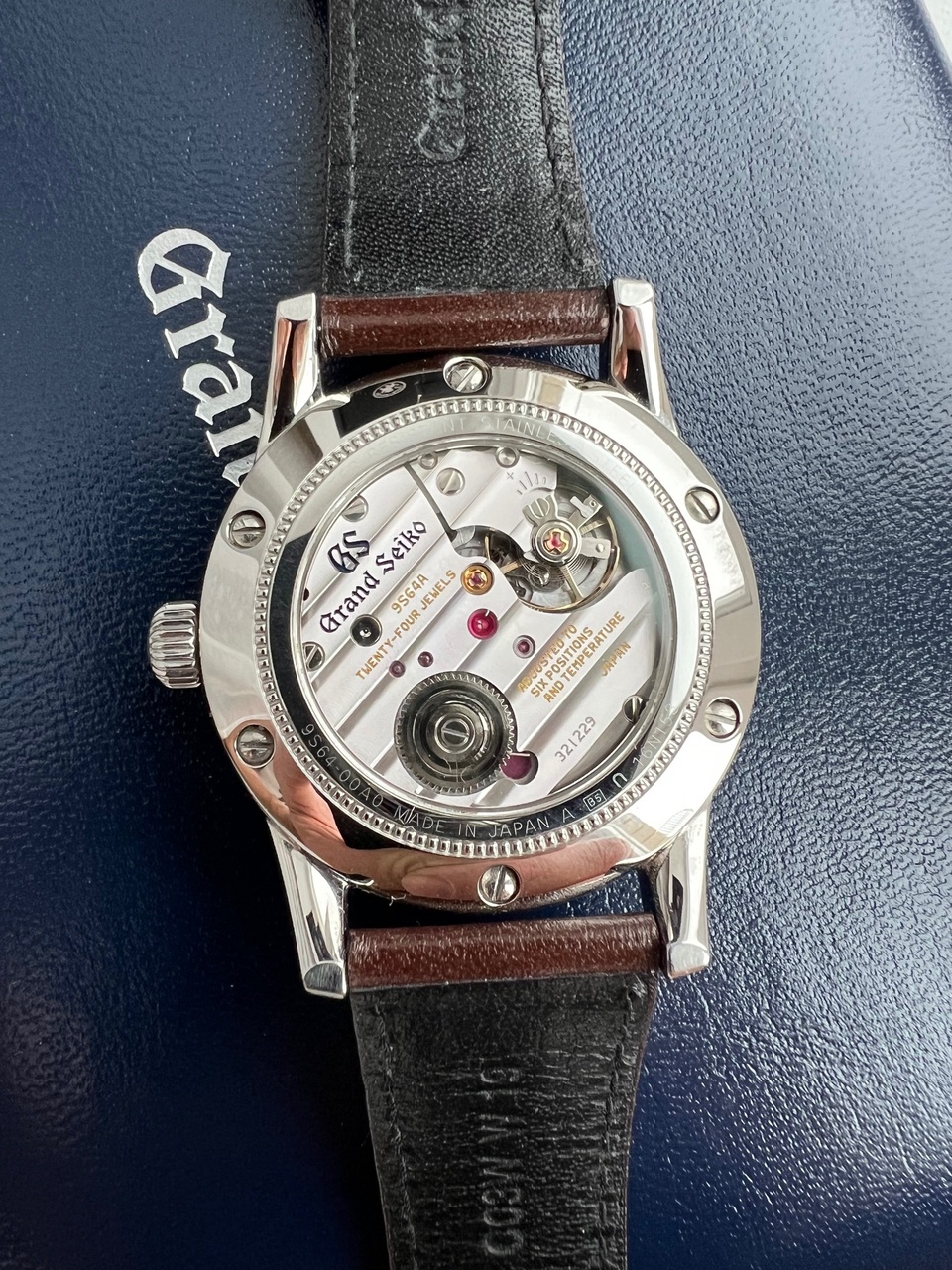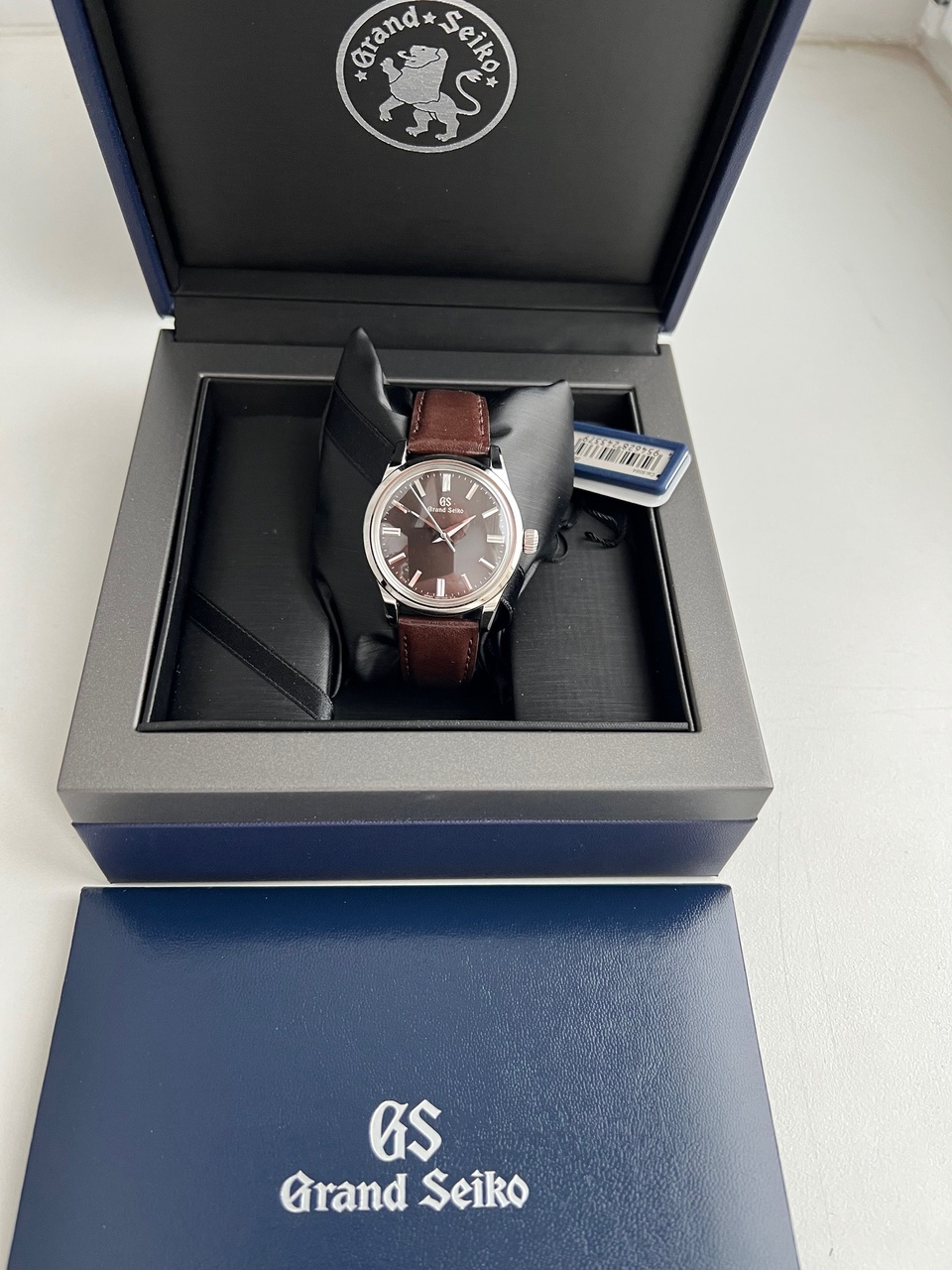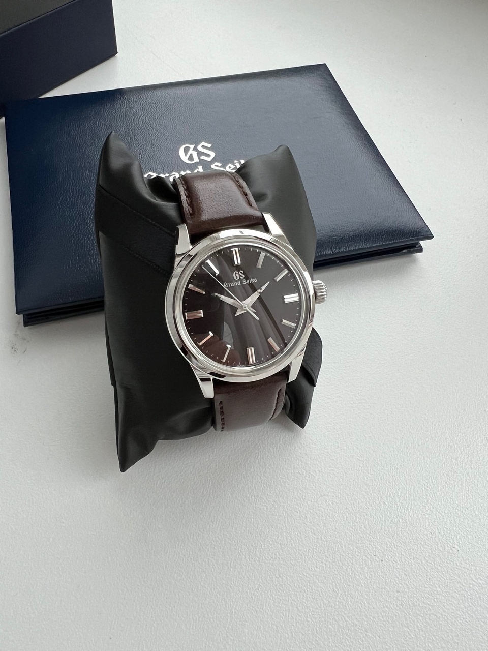 Продаются в Москве часы Grand Seiko Elegance SBGW269g. Диаметр корпуса 37 мм, толщина 11,6 мм, механика, запас хода 72 часа с точностью -3/+5 секунд в сутки. Циферблат темно-коричневого цвета с фактурой рисовой бумаги.