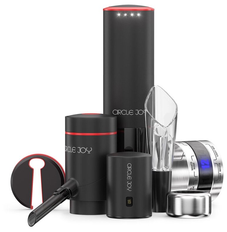 Комплект винных девайсов Circle joy No1 — это уникальный вариант премиум класса, в котором соединены современные и технологичные приспособления для откупоривания, розлива и хранения вина.