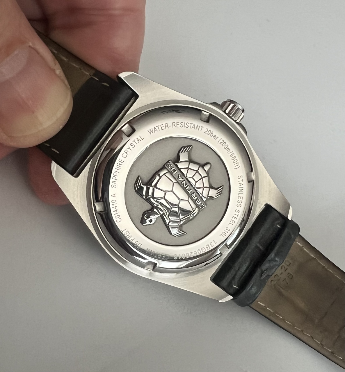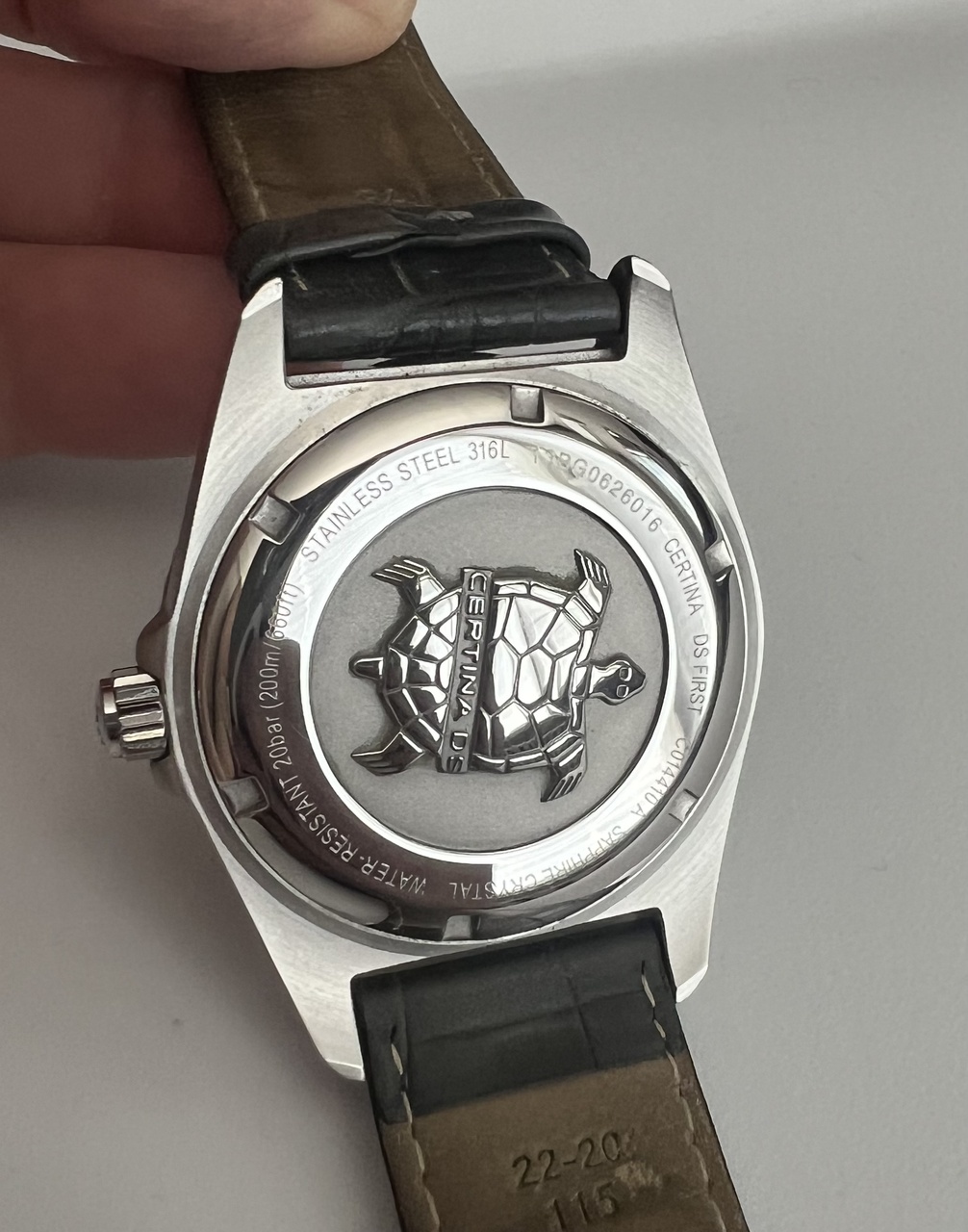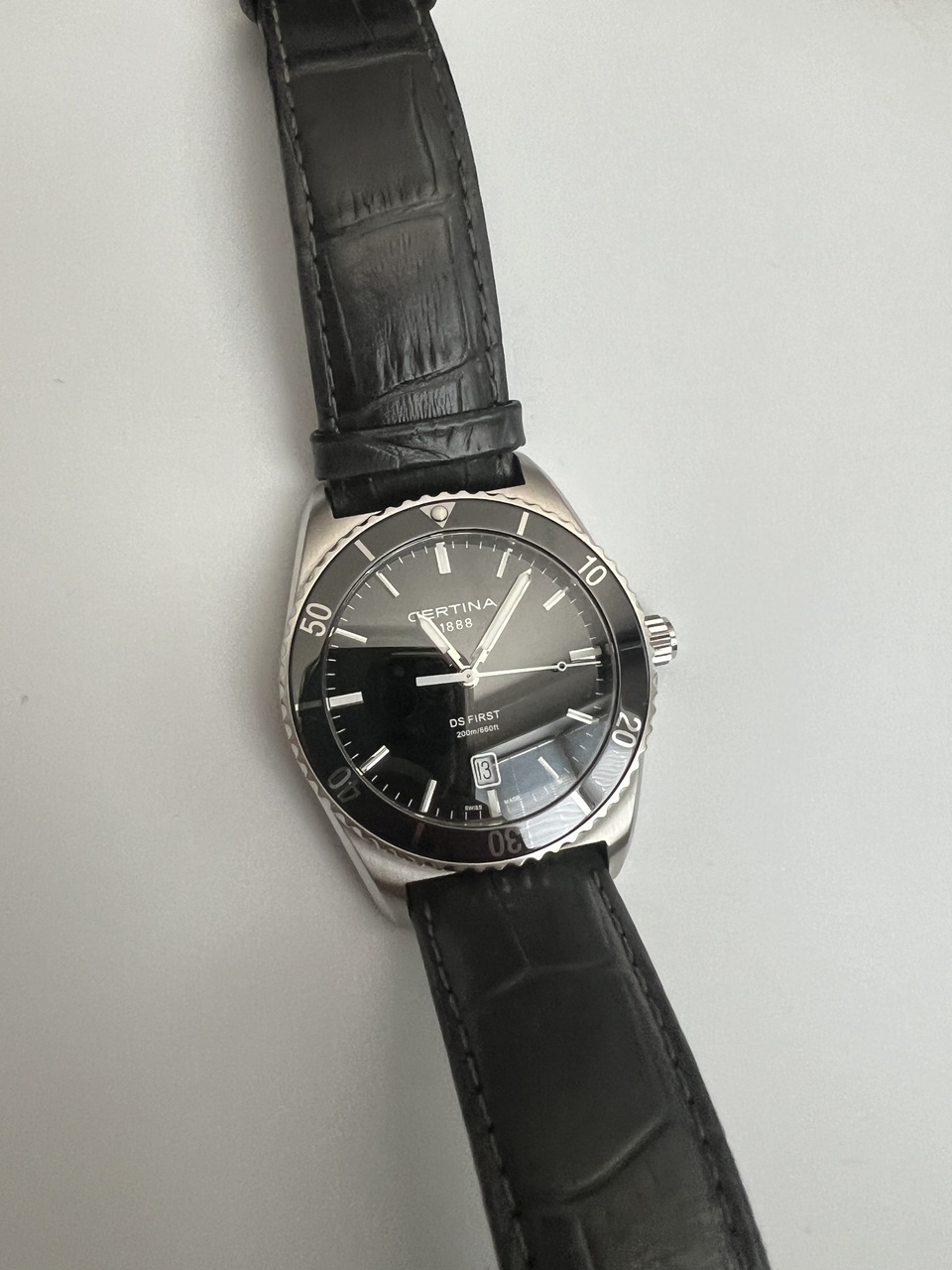 Покупались тут на форуме новыми в мае 2021 года. Ссостояние часов отличное, кроме ремешка - он под замену. Кроме этого часы 3 дня тому назад показали, что батарейку надо менять. Часы не испытывались на выносливость ни в воде ни на суше - каждодневное ношение - офис. Повреждений корпуса, ни безеля , ни сапфира нет. Уточнение - имеется небольшая микроточечка на левом торце часов - на фото постарался показать.
