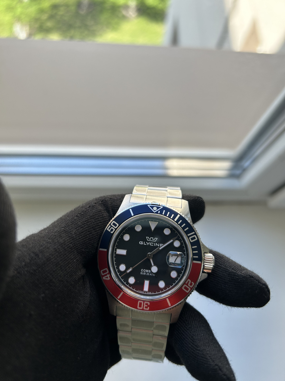 Glycine combat sub / дайвер в расцветке pepsi с черным цифером / браслет / циклоп над датой / отличная цена! - Часовой форум Watch.ru