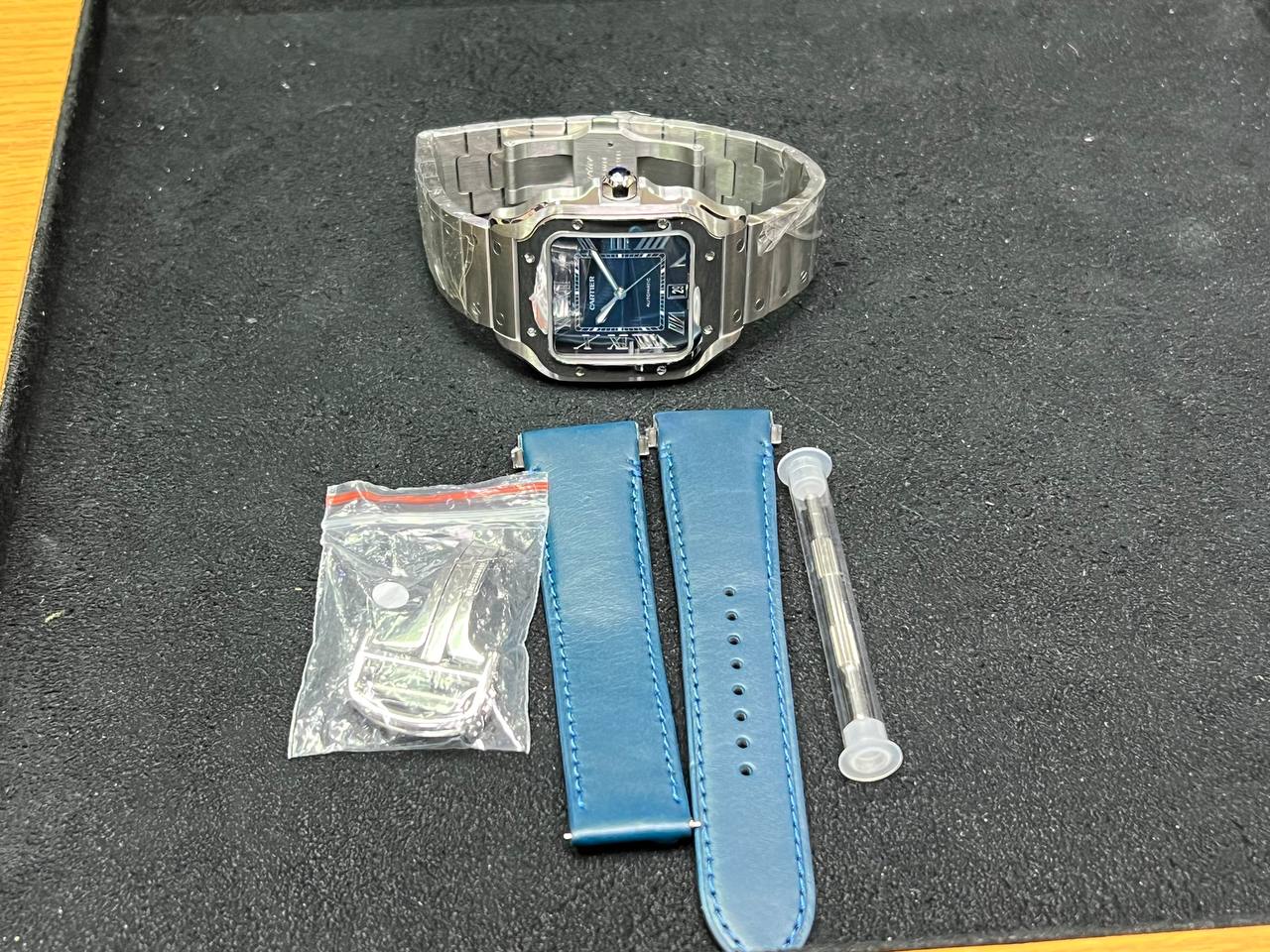 *CARTIER* SANTOS DE CARTIER LARGE AUTOMATIC WSSA0030/БРАСЛЕТ+СМЕННЫЙ РЕМЕНЬ/СИНИЙ ЦИФЕРБЛАТ