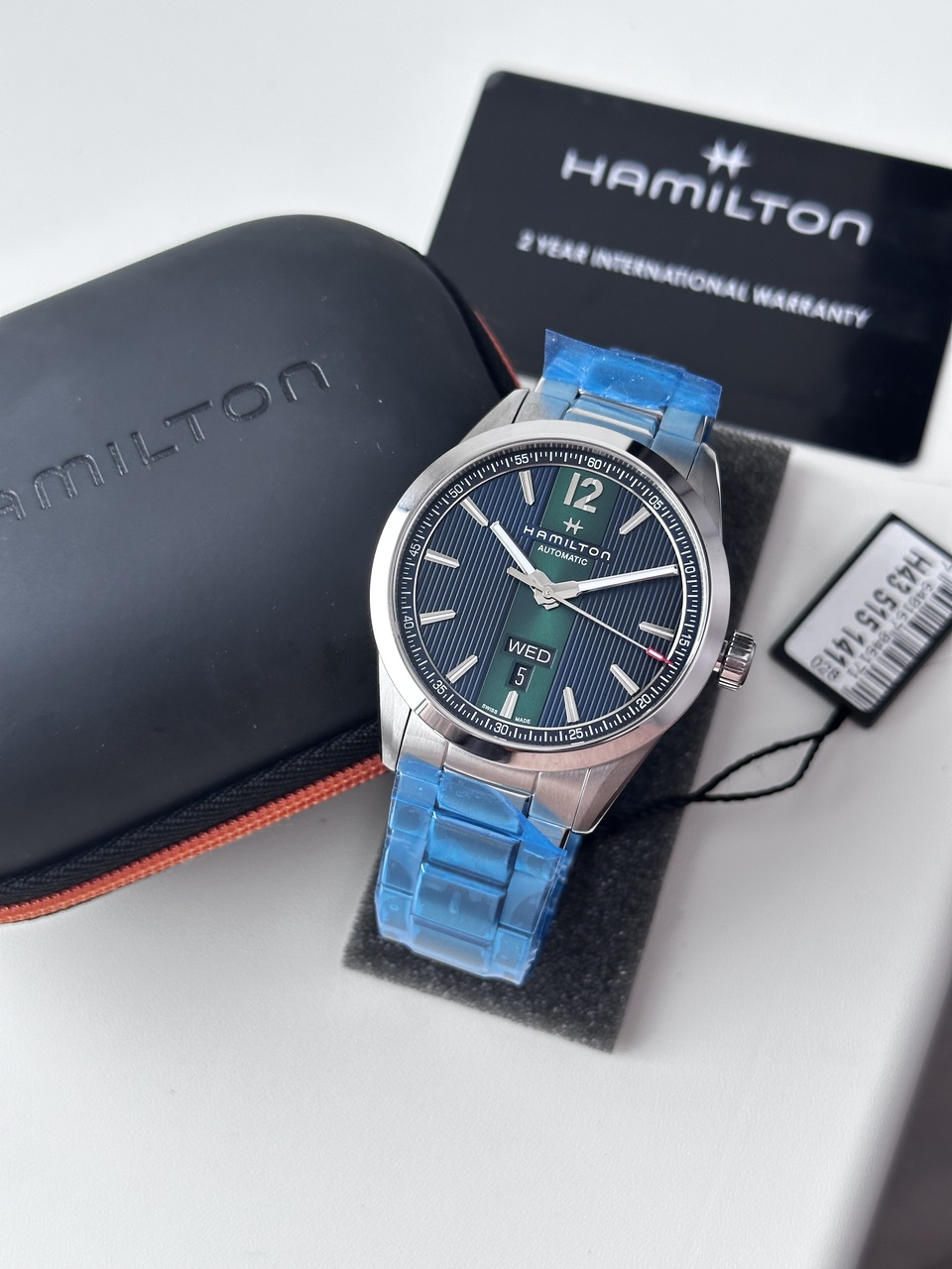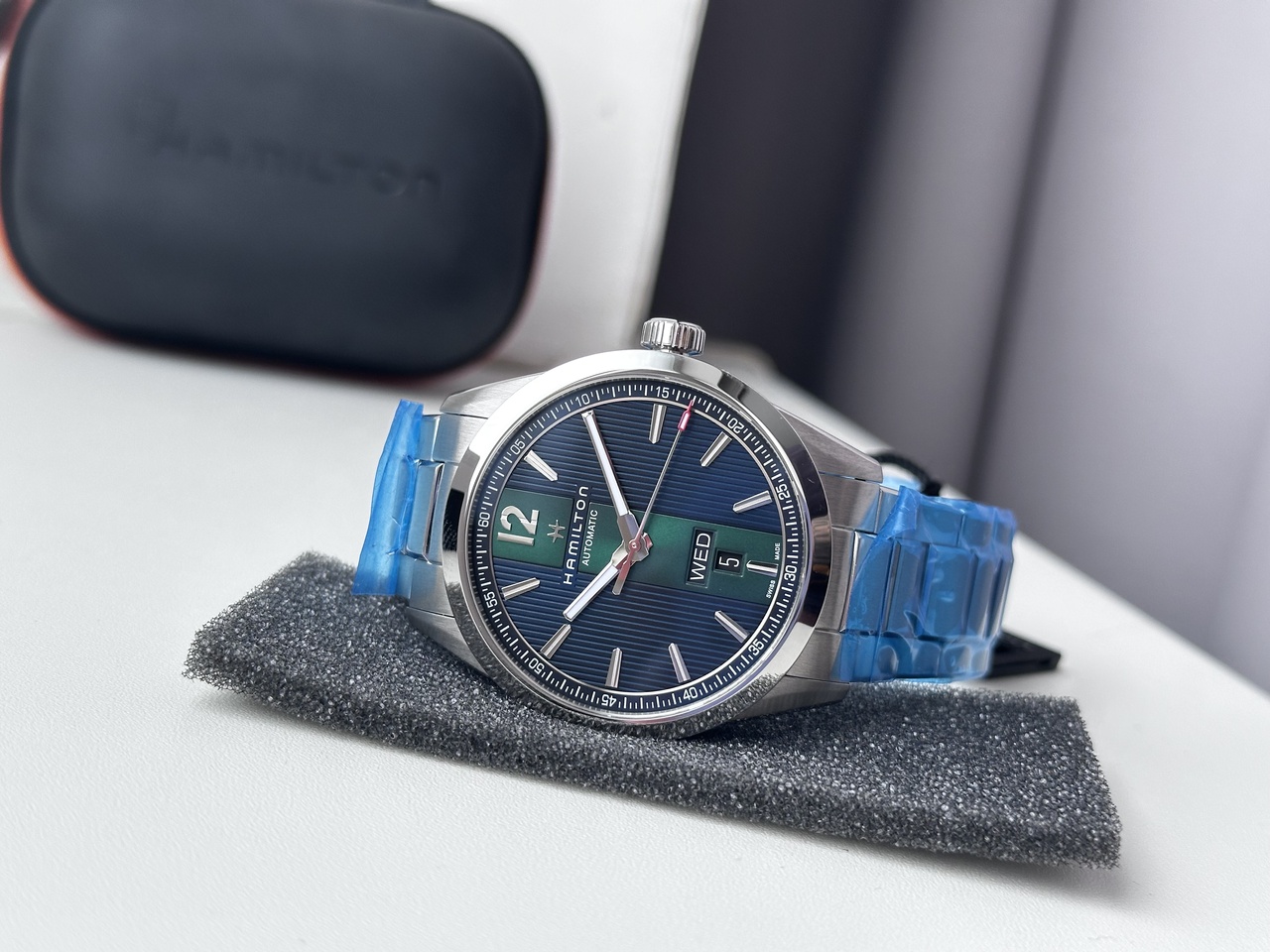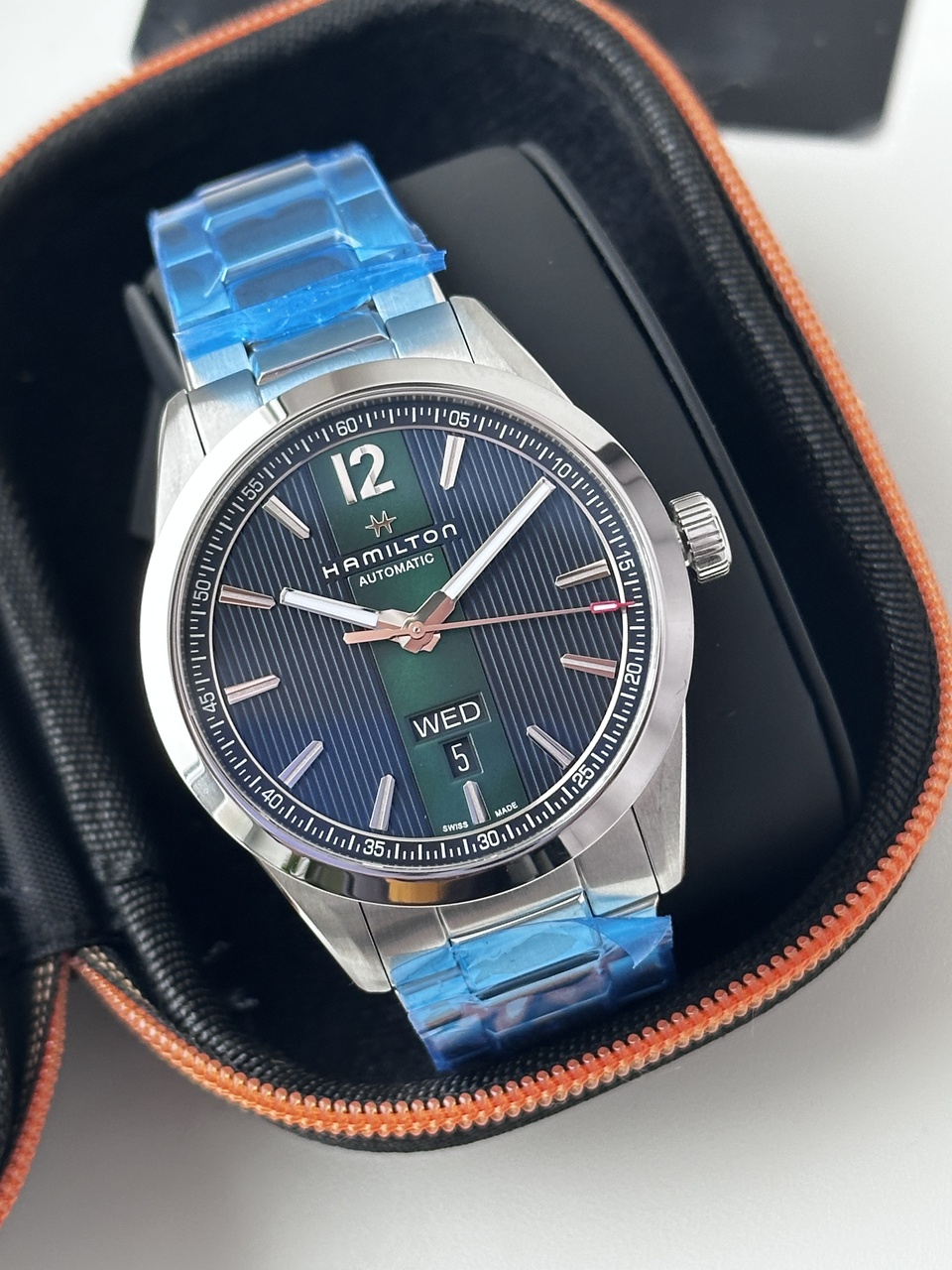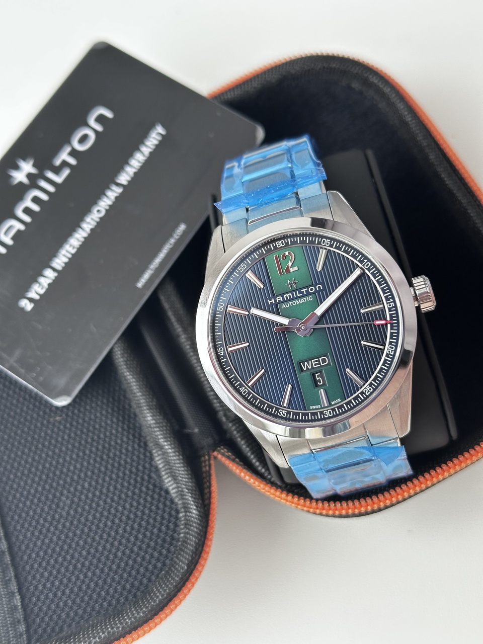 HAMILTON BROADWAY DAY-DATE AUTOMATIC H43515141. ОТЛИЧНЫЙ БРОДВЕЙ НА БРАСЛЕТЕ, СИНИЙ ЦИФЕРБЛАТ С ЗЕЛЁНОЙ ПОЛОСКОЙ, САПФИР, АВТОПОДЗАВОД. - Часовой форум Watch.ru