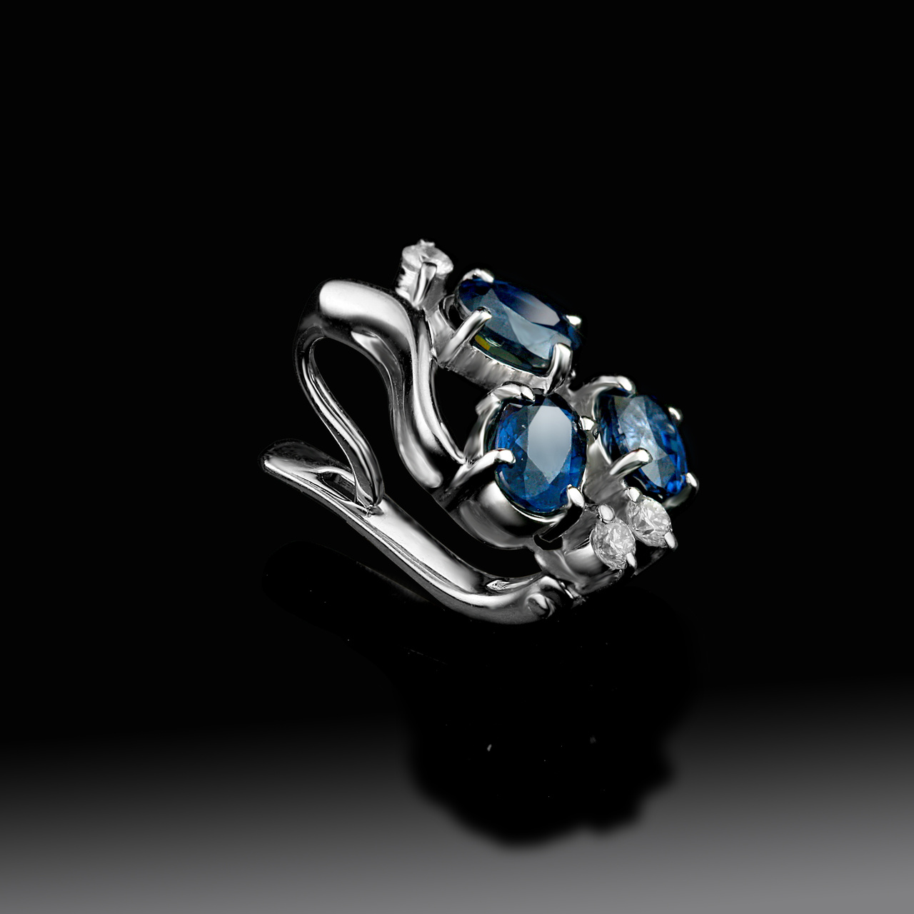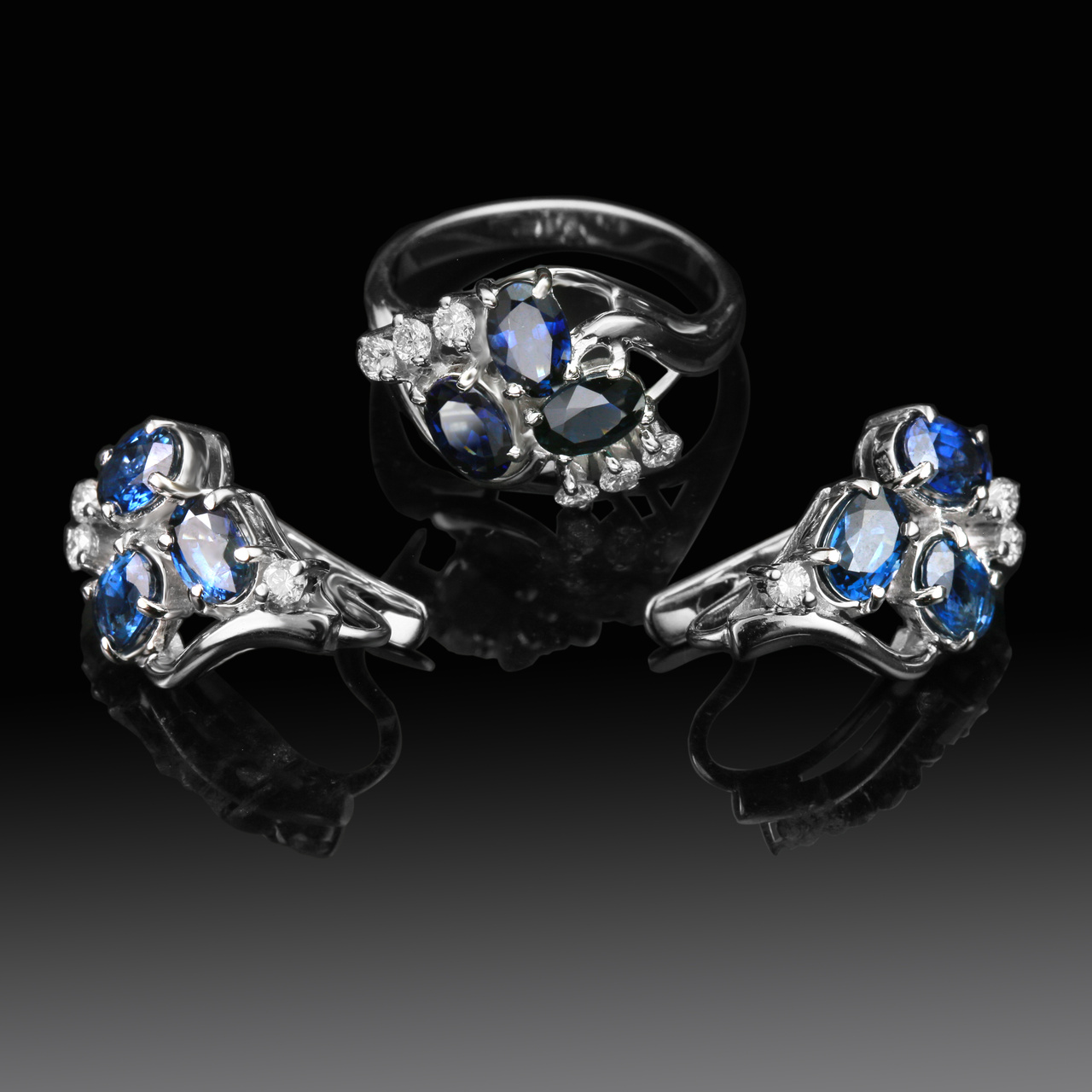 Кольцо и серьги из белого золота с сапфирами 4,75 карат и бриллиантами 0,48 карат