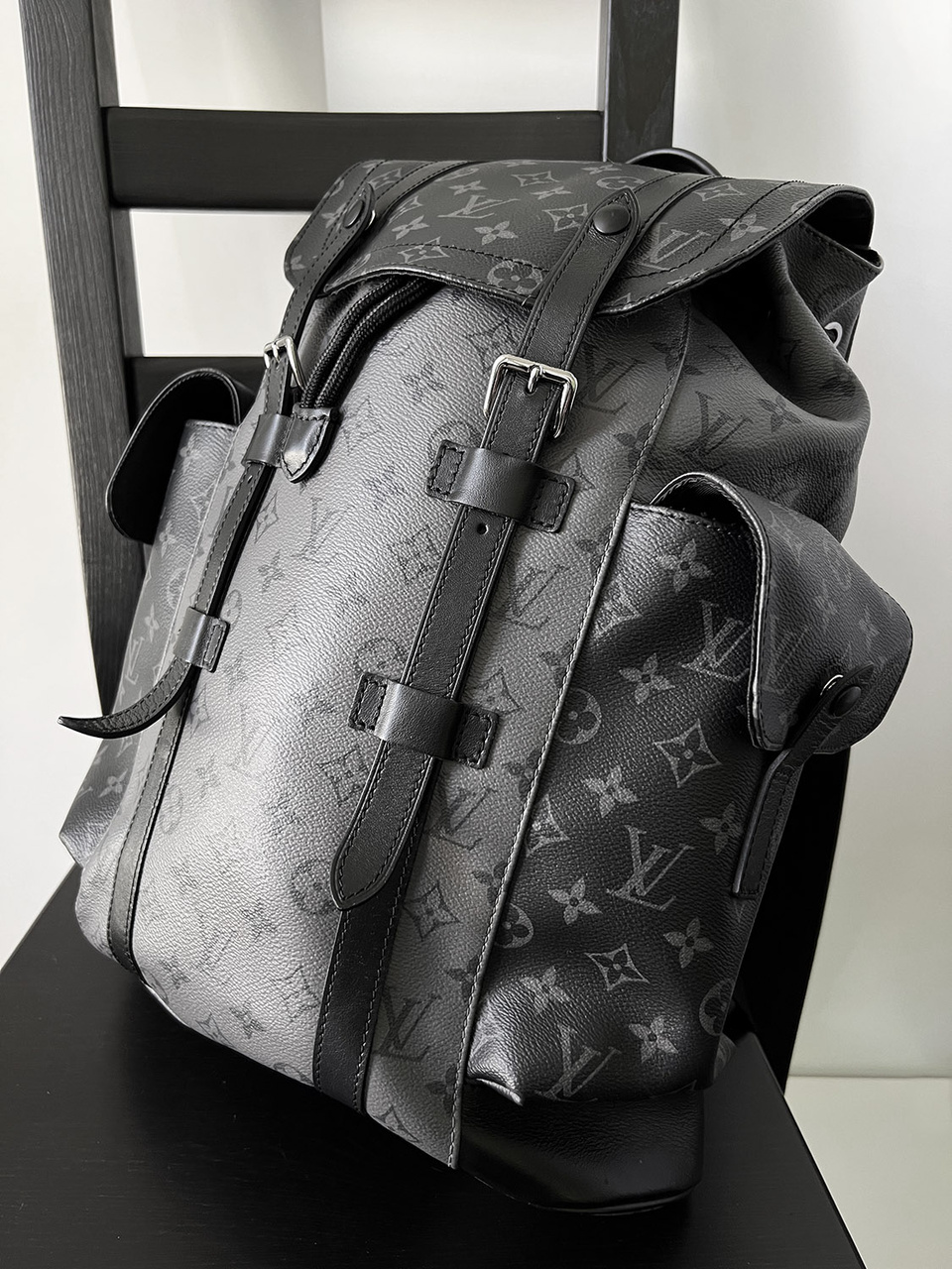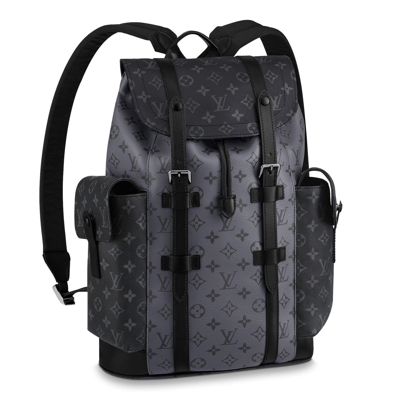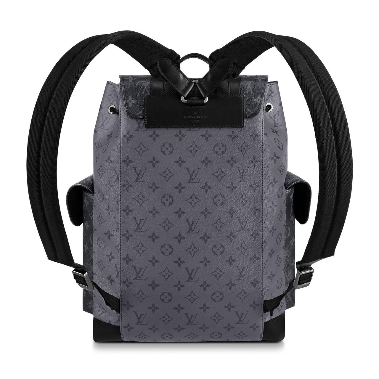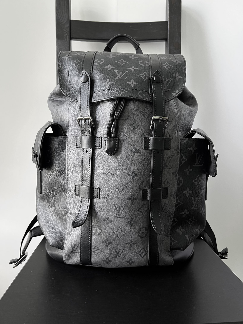 "Мужской рюкзак Christopher, сочетающий эффектный стиль с многофункциональностью - классика Louis Vuitton. Рюкзак особенно стильно выглядит в сочетании канвы Monogram Eclipse и Monogram Eclipse Reverse. Стильный и практичный рюкзак дополнен отделкой из кожи чёрного цвета и украшен серебристой фурнитурой. Практичный дизайн завершают застёжка-клапан на кнопках и карманы для надёжного хранения всего необходимого. Вместительный рюкзак идеален и для повседневного городского ношения и для активного отдыха."
