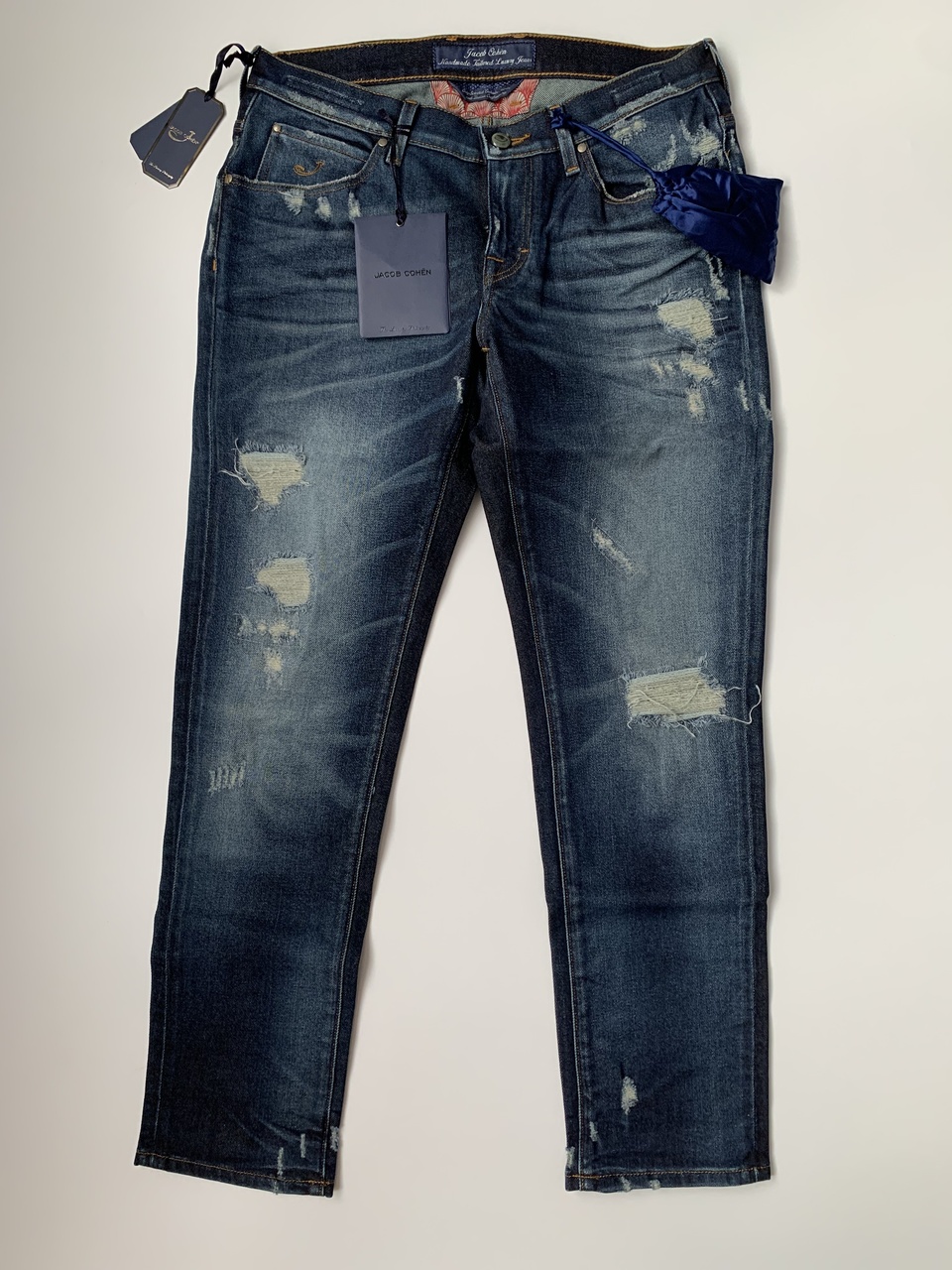 JACOB COHËN новые женские джинсы с разрывами и потёртостями синего цвета (26-27 size)