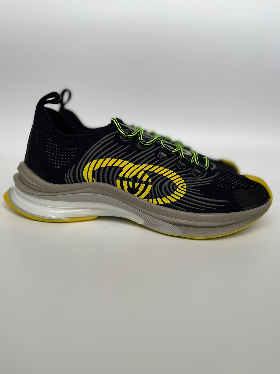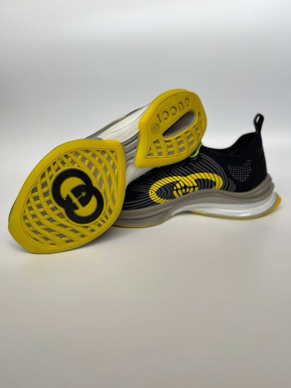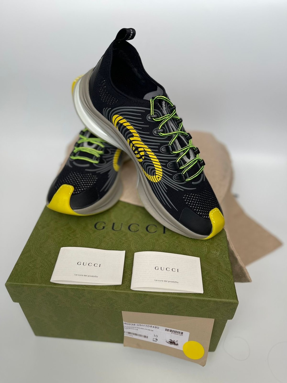 GUCCI новые мужские кроссовки RUN из лёгкого сетчатого трикотажа /цвет чёрный-жёлтый/ (10 UK/44 EU size)