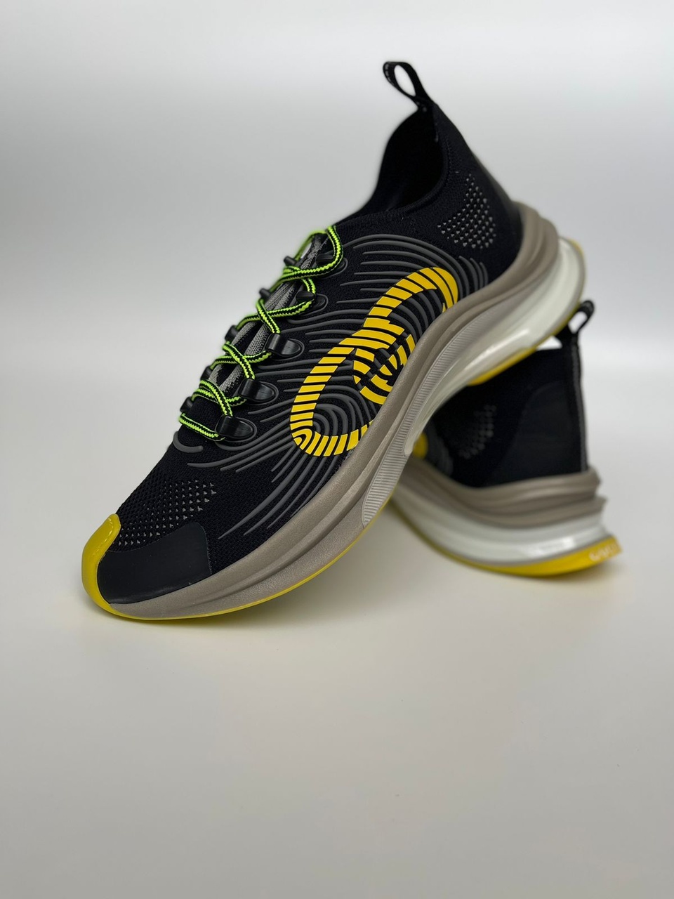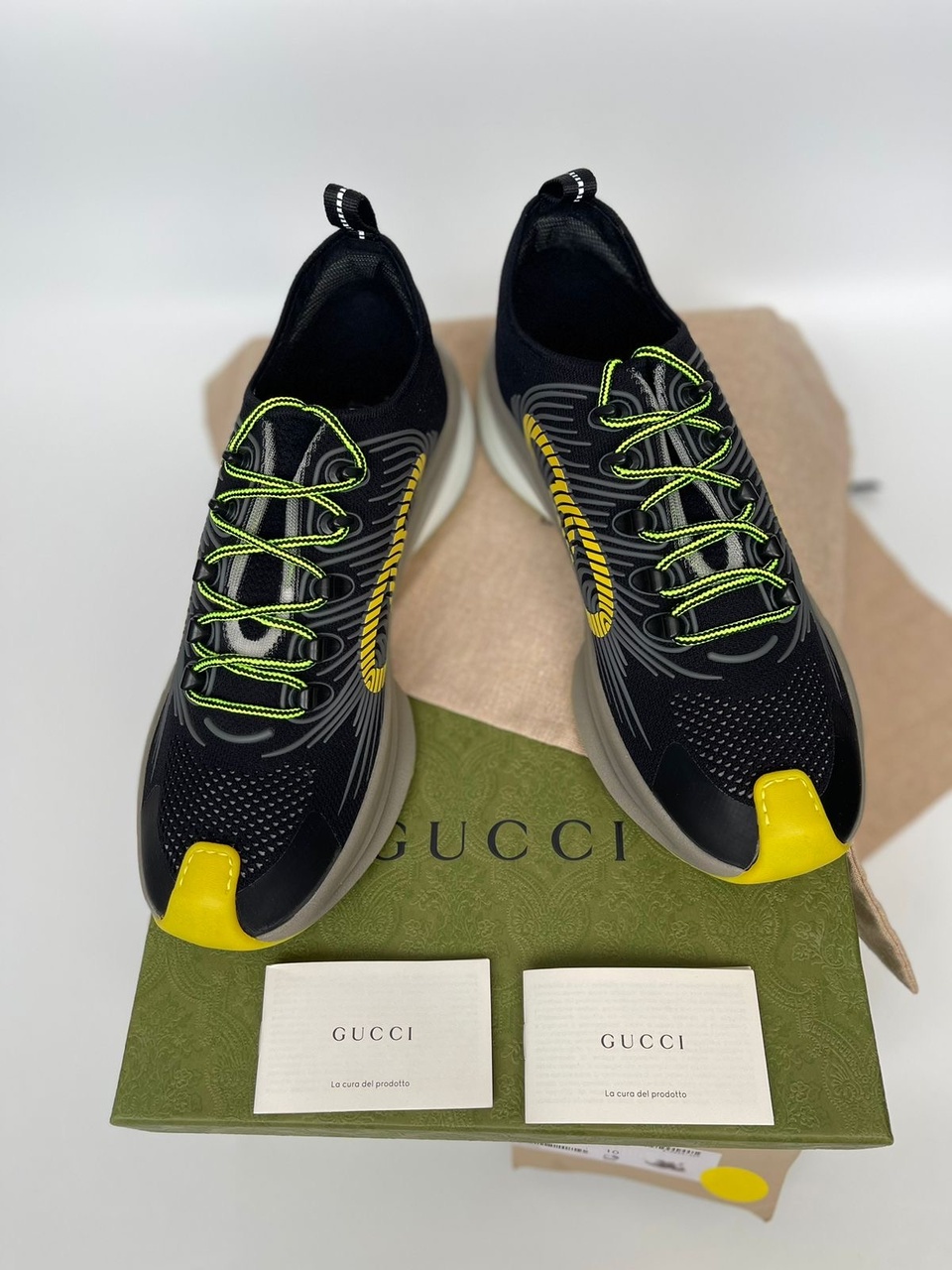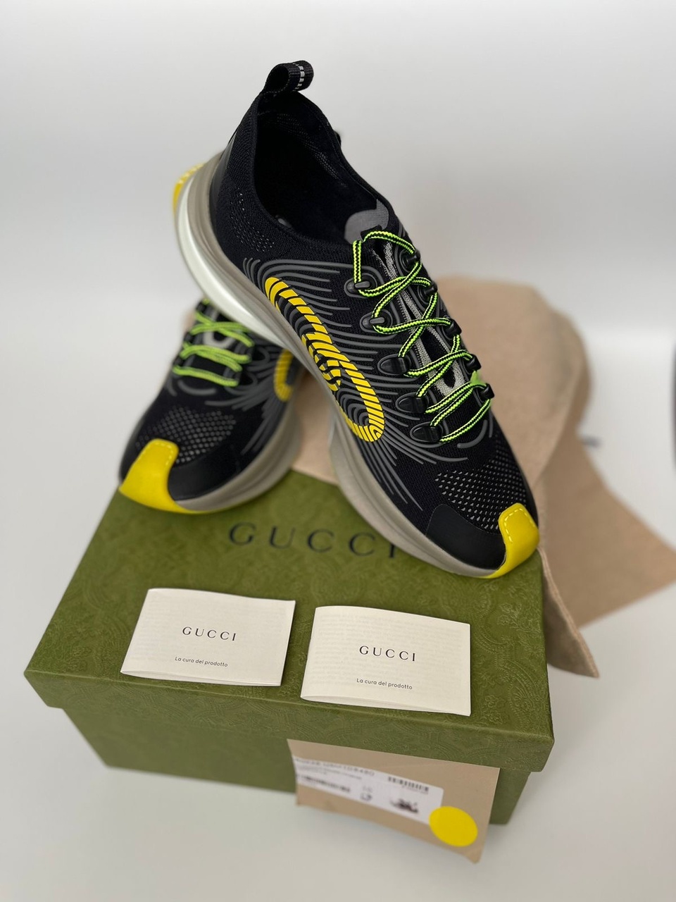 GUCCI новые мужские кроссовки RUN из лёгкого сетчатого трикотажа /цвет чёрный-жёлтый/ (10 UK/44 EU size)