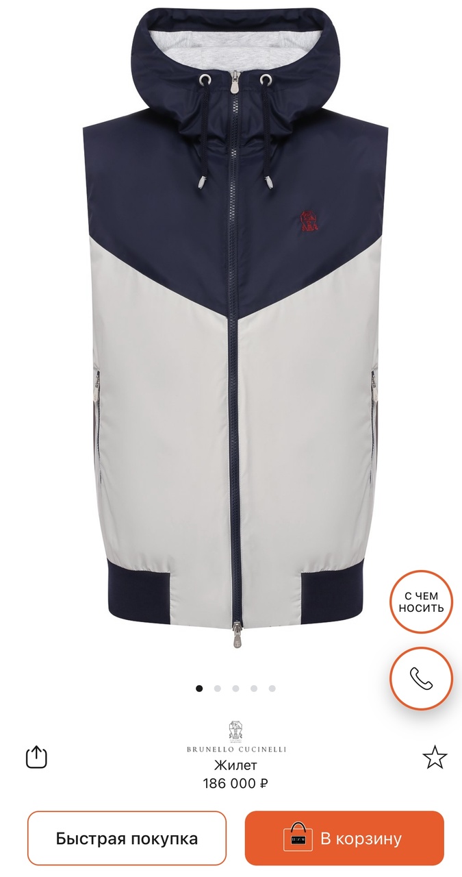 В продаже новый мужской жилет из нейлоновой ткани от известного итальянского люкс-бренда BRUNELLO CUCINELLI.