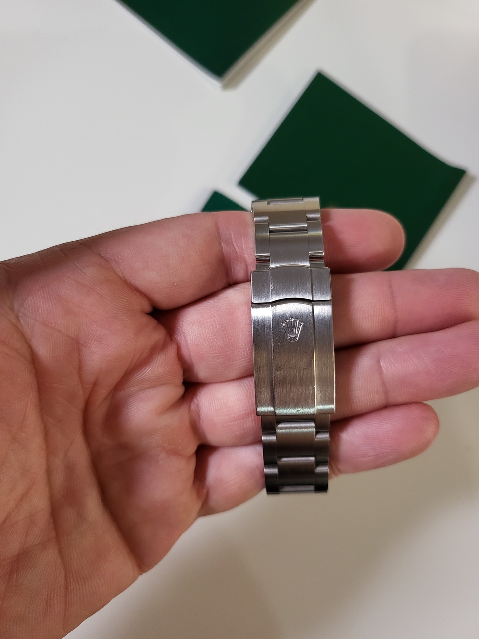 36-миллиметровый цельный корпус с выпуклым безелем и браслет с фирменной раскладывающейся застежкой Oyster Clasp изготовлены из нержавеющей стали 904L. Суперсплав 904L с исключительной прочностью используется в сфере высоких технологий, космической и химической промышленности, где требуется максимальная стойкость к коррозии.