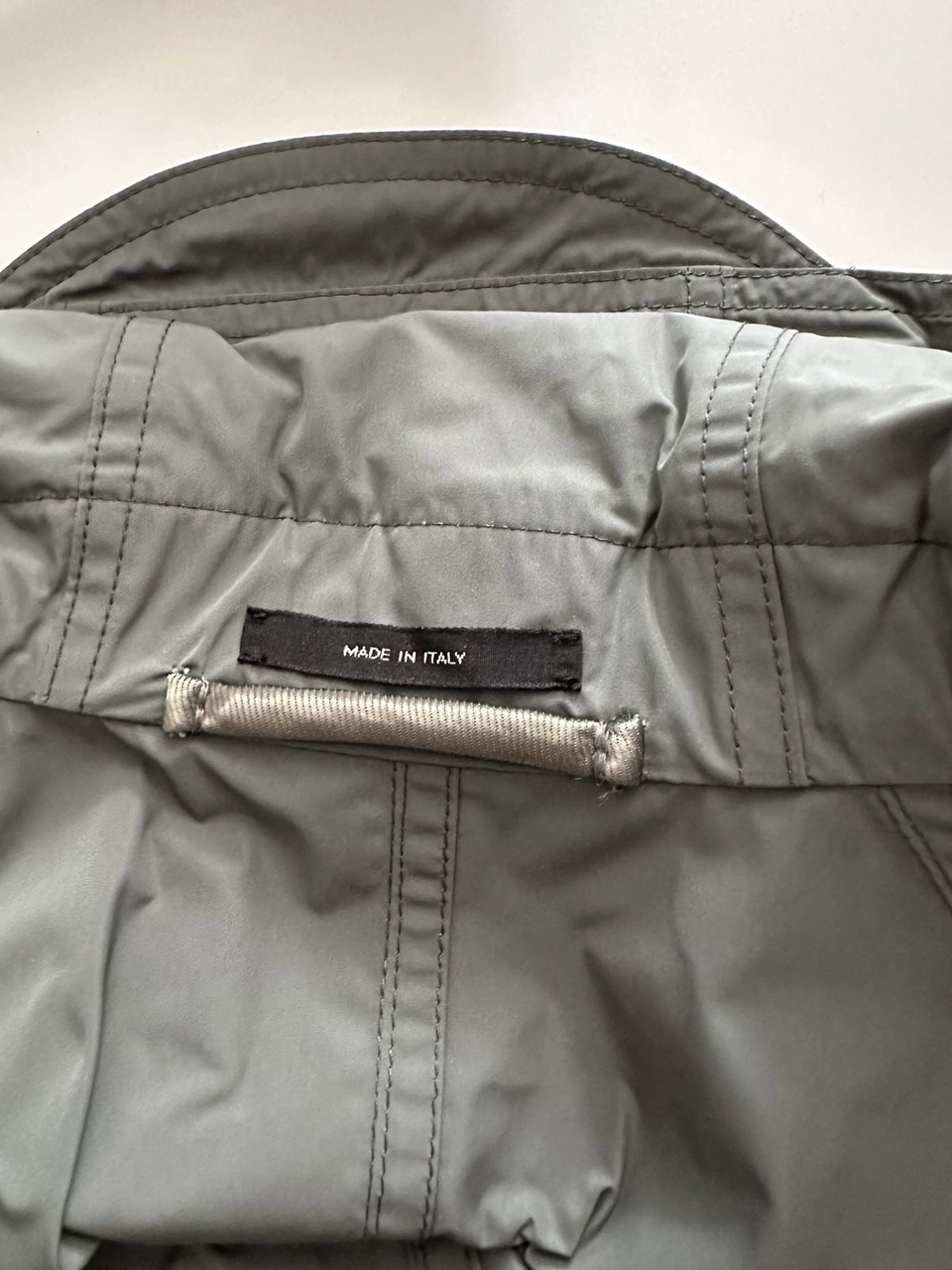 Куртка является идеальным вариантом для создания повседневного образа.Модель изготовлена из водоотталкивающей ткани нейтрального серо-зелёного цвета.Застёжка на крупную металлическую молнию с двойным брендированным бегунком.Низ изделия и манжеты рукавов выполнены из трикотажа в резинку.Боковые карманы и молния с контрастной отделкой из кожи коричневого цвета.Безподкладочная модель стандартного кроя.