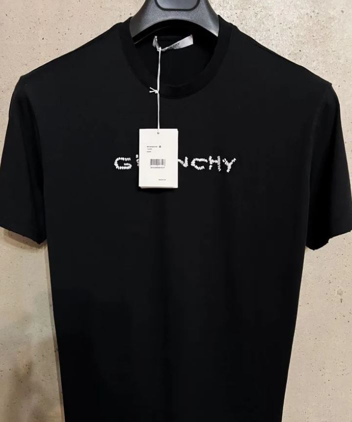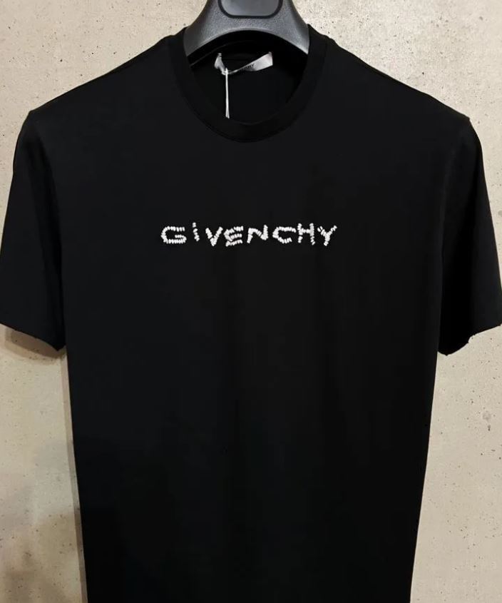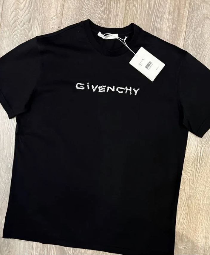 Футболка GIVENCHY// новая с бирками// черная с белым, вышитым вручную крупными стежками, логотипом бренда//