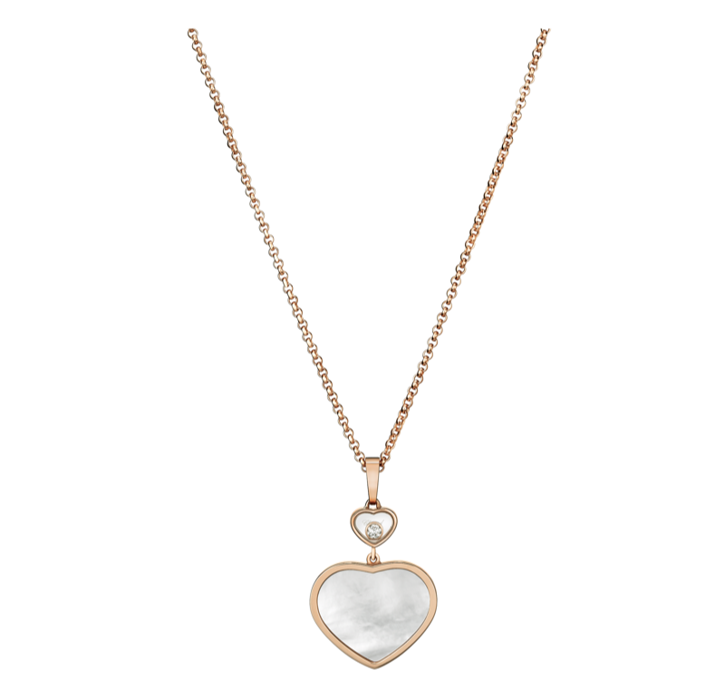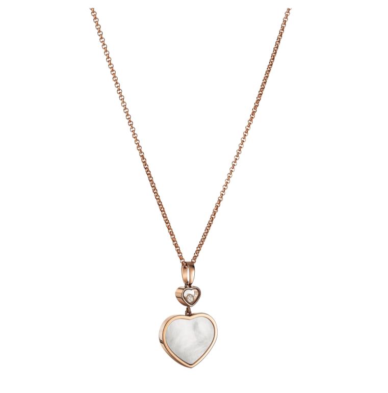 КУЛОН *CHOPARD* HAPPY HEARTS 797482-5301 В ВИДЕ СЕРДЦА В РОЗОВОМ ЗОТОТЕ С ПЛАВАЮЩИМ БРИЛЛИАНТОМ И НАТУРАЛЬНЫМ ПЕРЛАМУТРОМ