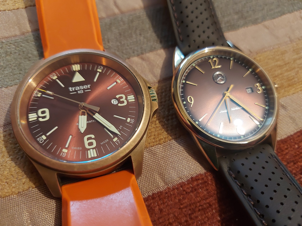 Я бы этот ремешок, несмотря на нелюбовь к НАТО, и оставил, если бы не стальная фурнитура в нитриде титана «под розовое золото»., которая совершенно не сочетается с бронзой.