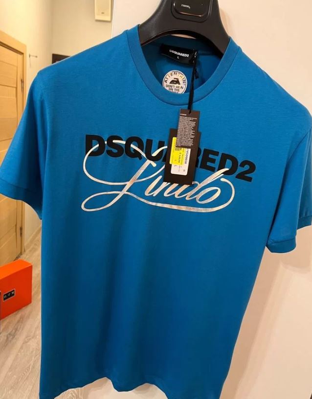 Футболка DSQUARED2// Новая с Бирками// синяя с черно-белым принтом//подойдет на размер S/M