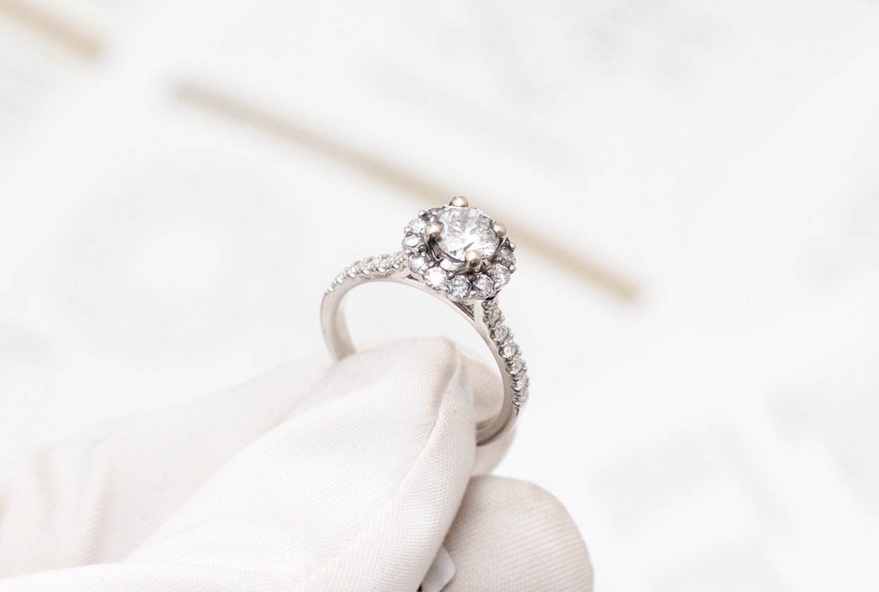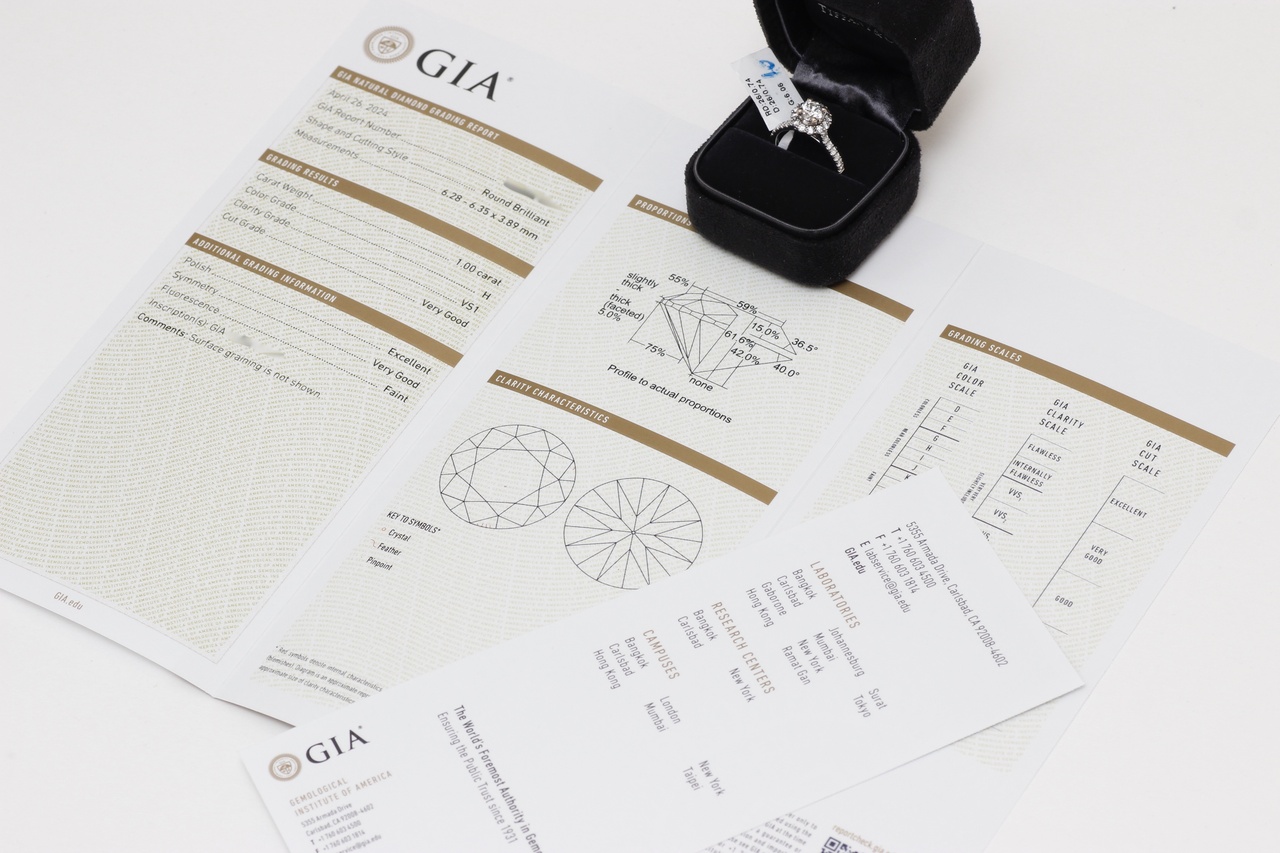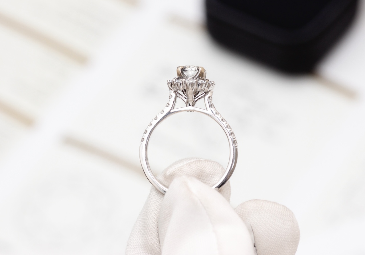 КОЛЬЦО С БРИЛЛИАНТОМ 1.00 ct H/VS1 (СЕРТИФИКАТ GIA) С БРИЛЛИАНТОВЫМ ПАВЕ (26 БРИЛЛИАНТОВ ОБЩЕЙ МАССОЙ 0.74 ct)