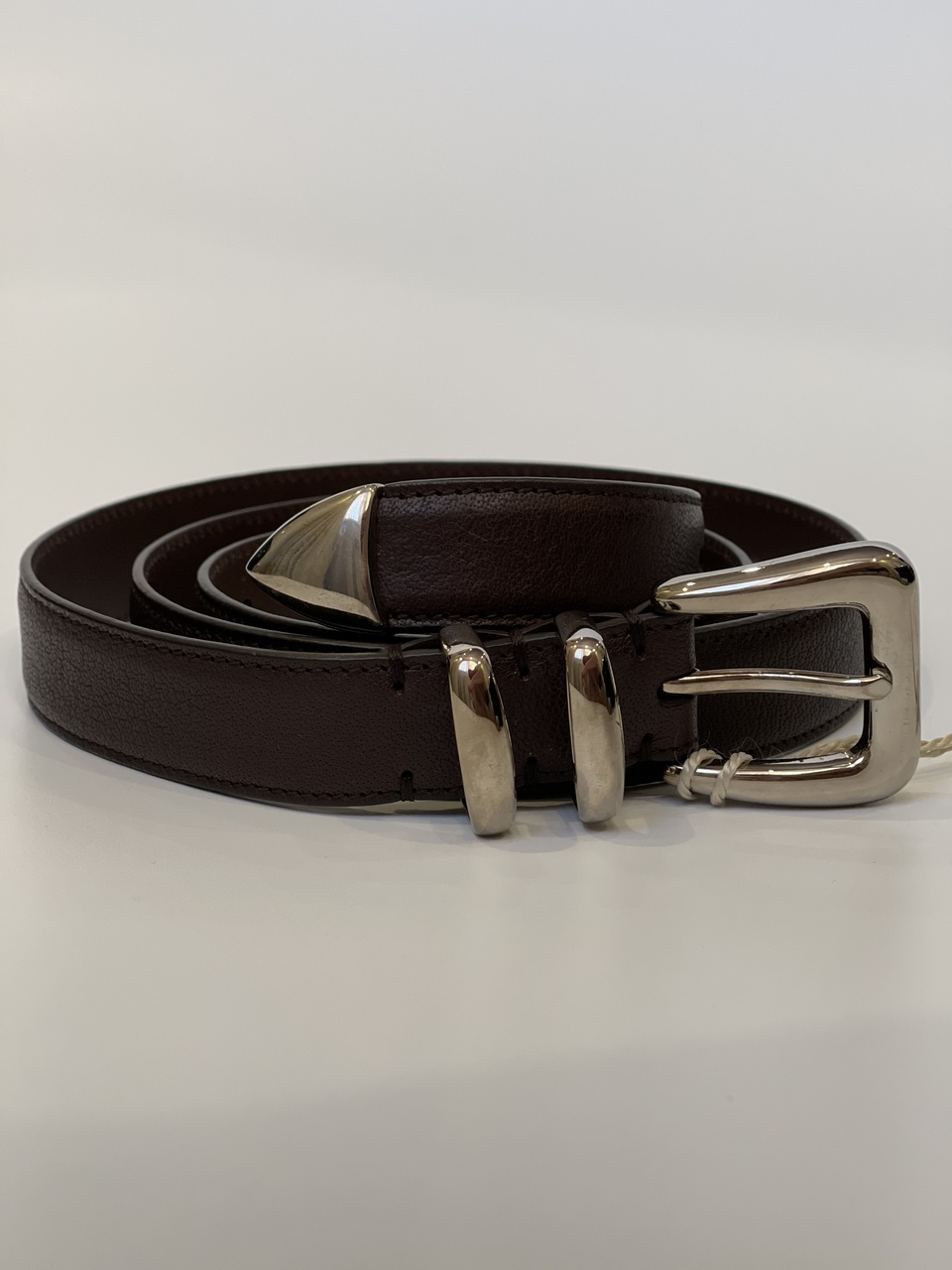 BRUNELLO CUCINELLI новый мужской ремень из телячьей кожи /двойная шлёвка и наконечник/ (2,5см*105см)