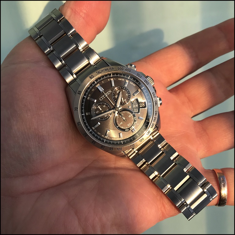 Минус (или плюс) – достаточно тонкий и очень гибкий браслет. Мне стало удобно только когда я его подогнал почти вплотную, чтобы не болтался. К часам он подогнан идеально (что не всегда бывает даже у Хрономастера), но сами часы кажутся массивными в контрасте с ним. Плюс, что вес из-за этого значительно ниже, чем у массивных браслетов. Сталь не титан, – «приятный вес» приятен, до тех пор, пока он не надоедает. Этот вес меня не напрягает.