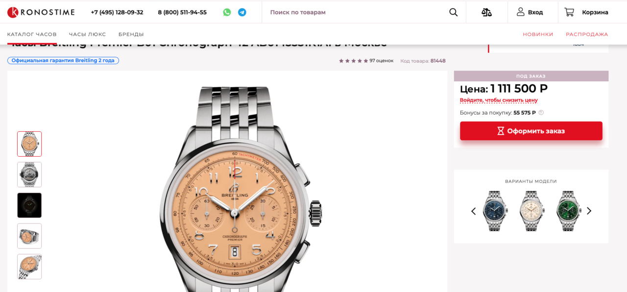 *BREITLING* PREMIER B01 CHRONOGRAPH 42 ММ AB0145331K1A1 С МЕДНЫМ ЦИФЕРБЛАТОМ НА БРАСЛЕТЕ