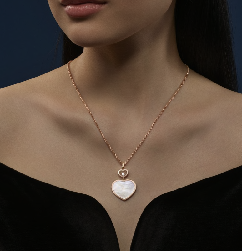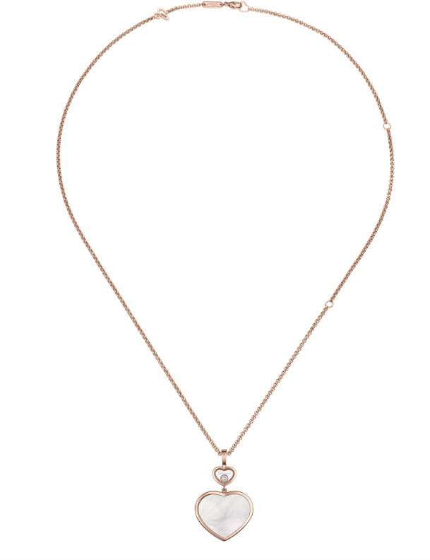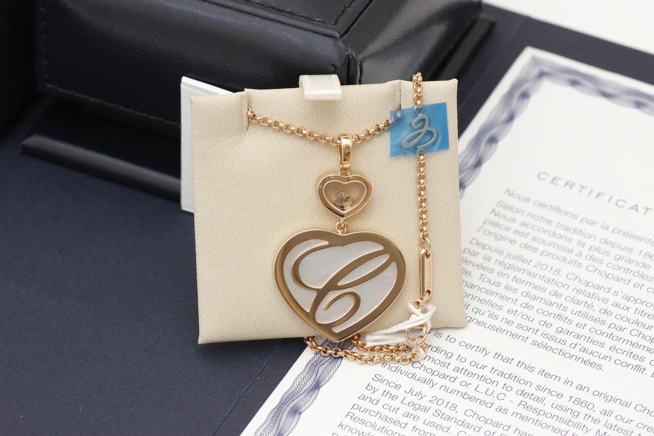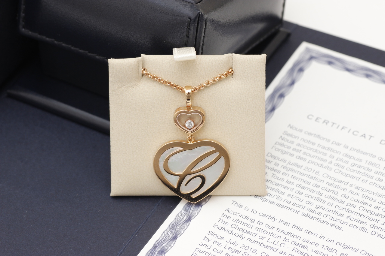 КРУПНАЯ ПОДВЕСКА *CHOPARD* HAPPY HEARTS 79A075-5301 В РОЗОВОМ ЗОЛОТЕ С ПЕРЛАМУТРОМ НА ЦЕПОЧКЕ 60см/ ПЛАВАЮЩИЙ БРИЛЛИАНТ 0.1ct
